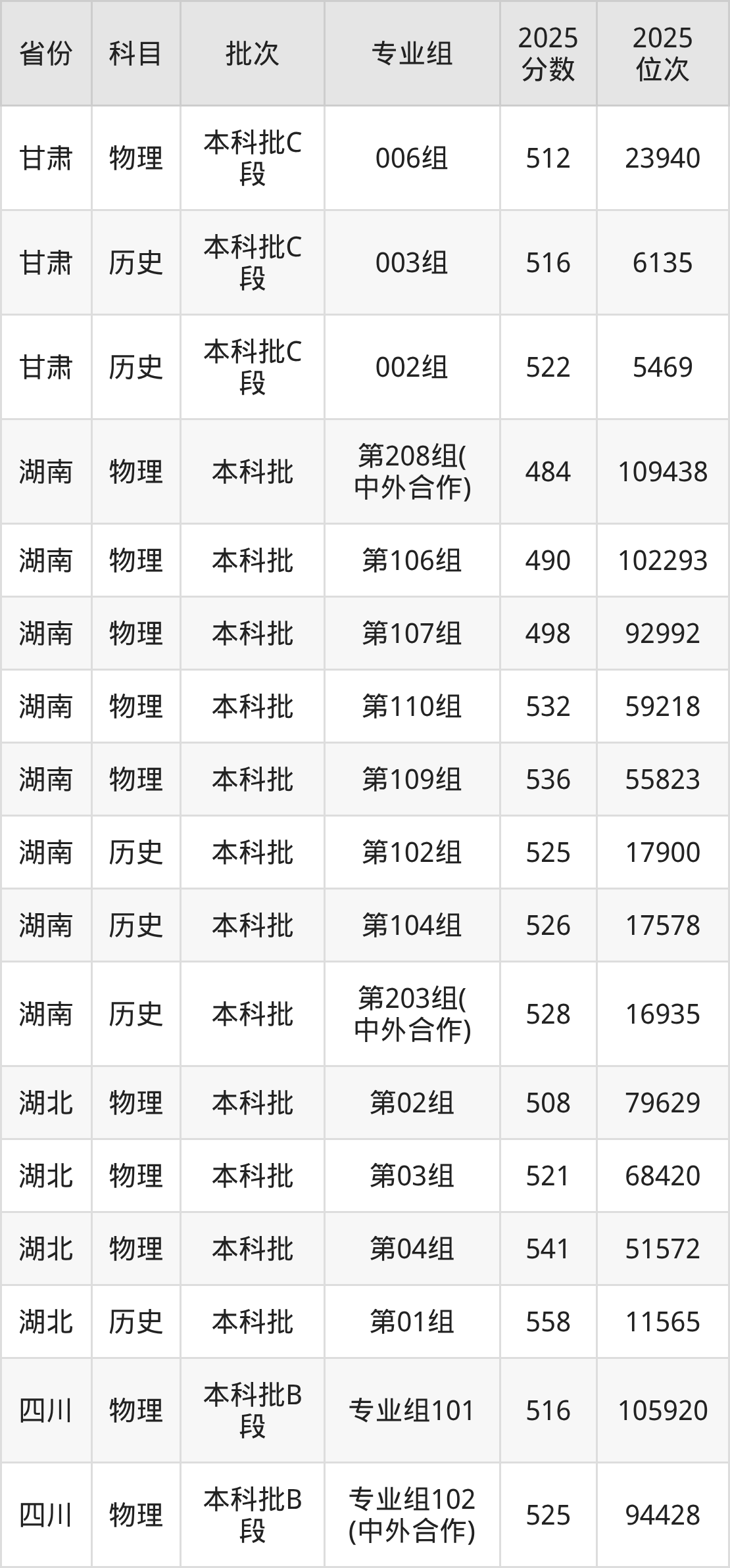 普通类本科物理类最低524分,本科历史类最低512分