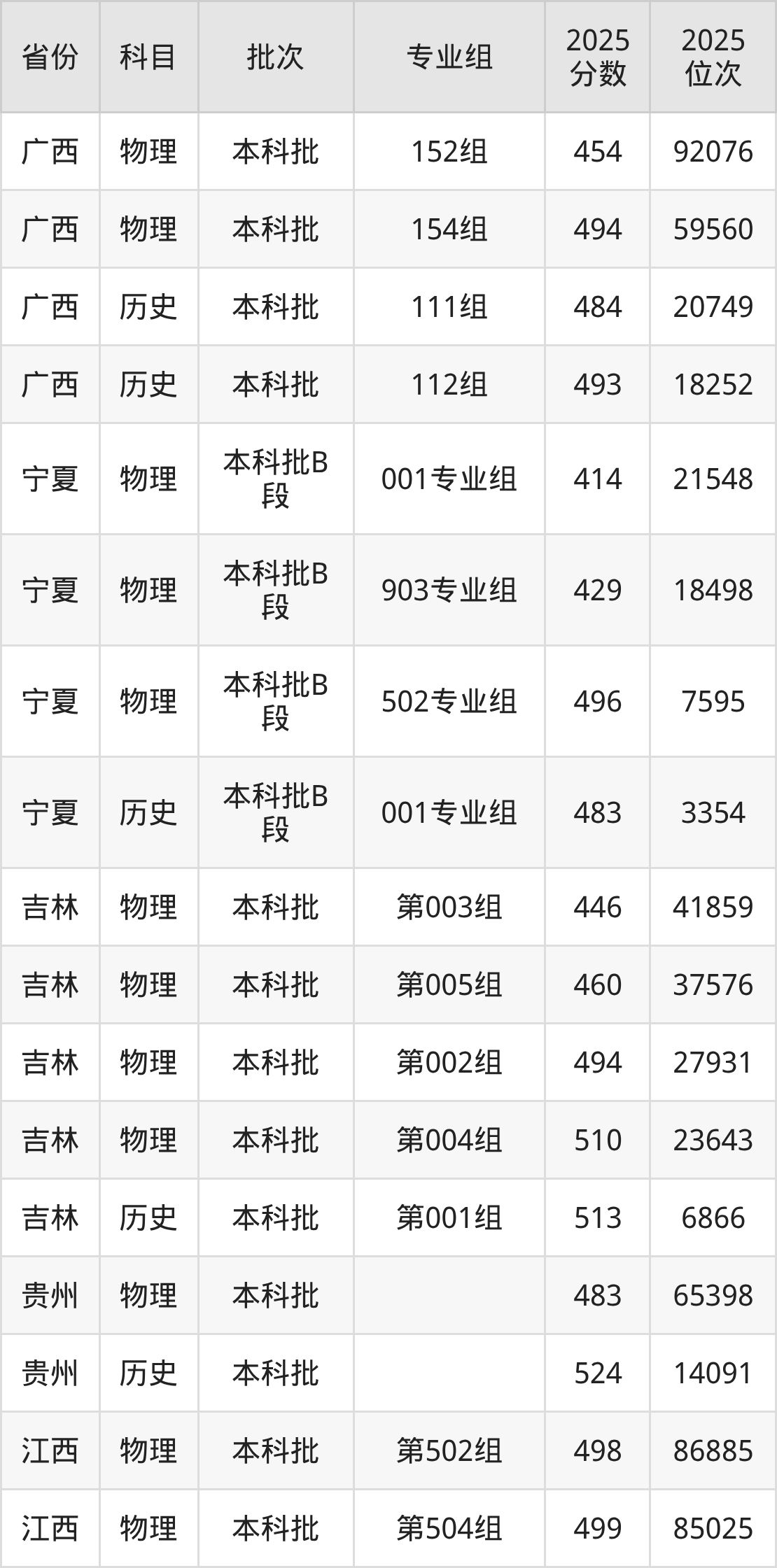 普通类本科物理类最低476分,本科历史类最低541分