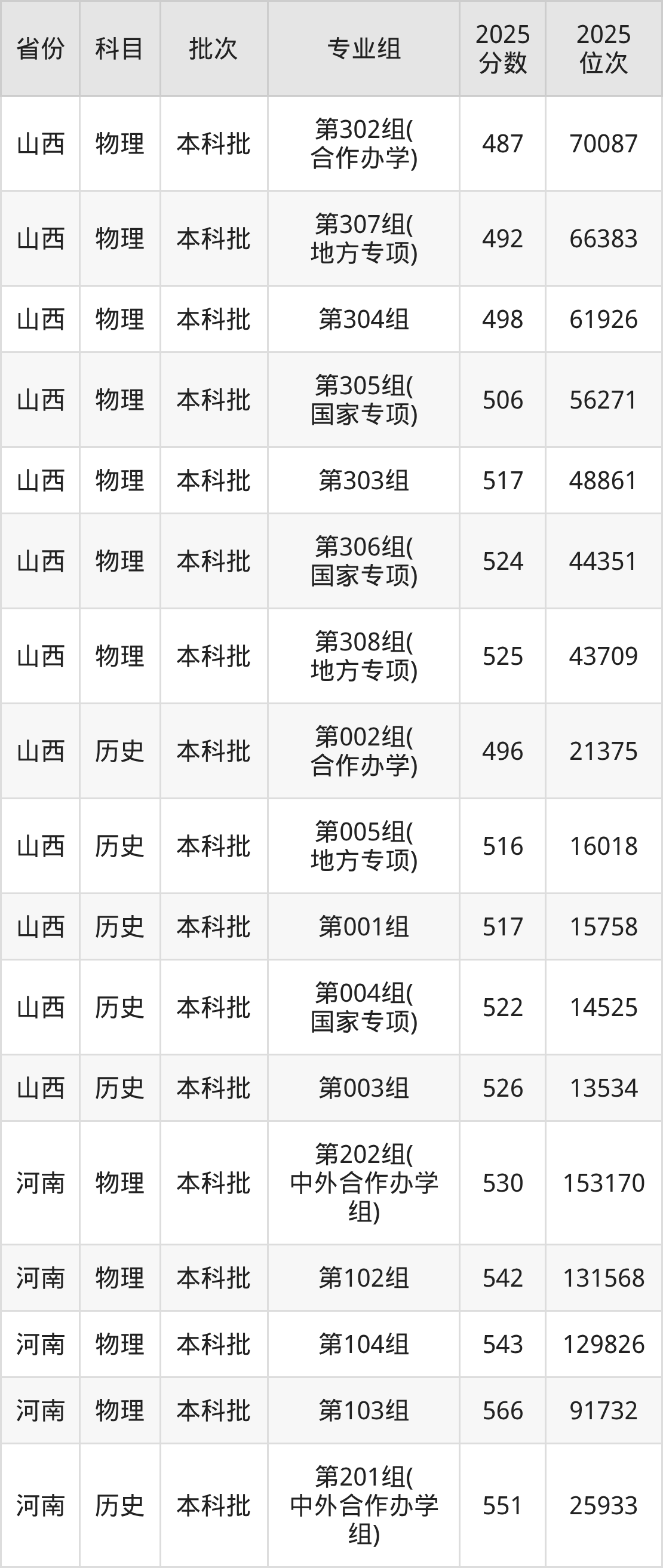 山西财经大学第201组(中外合作办学组):2025年投档录取最低分为551分,录取最低位次为25933名。