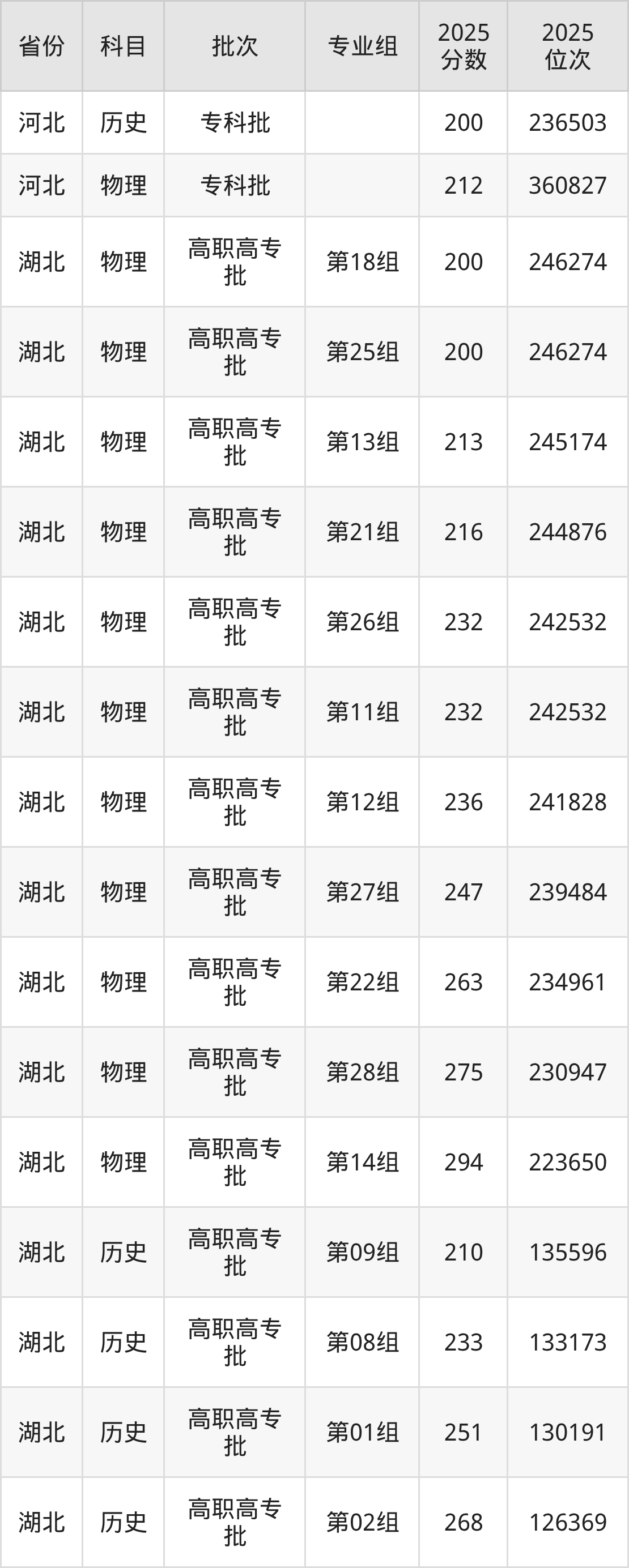 普通类专科物理类最低226分,专科历史类最低236分