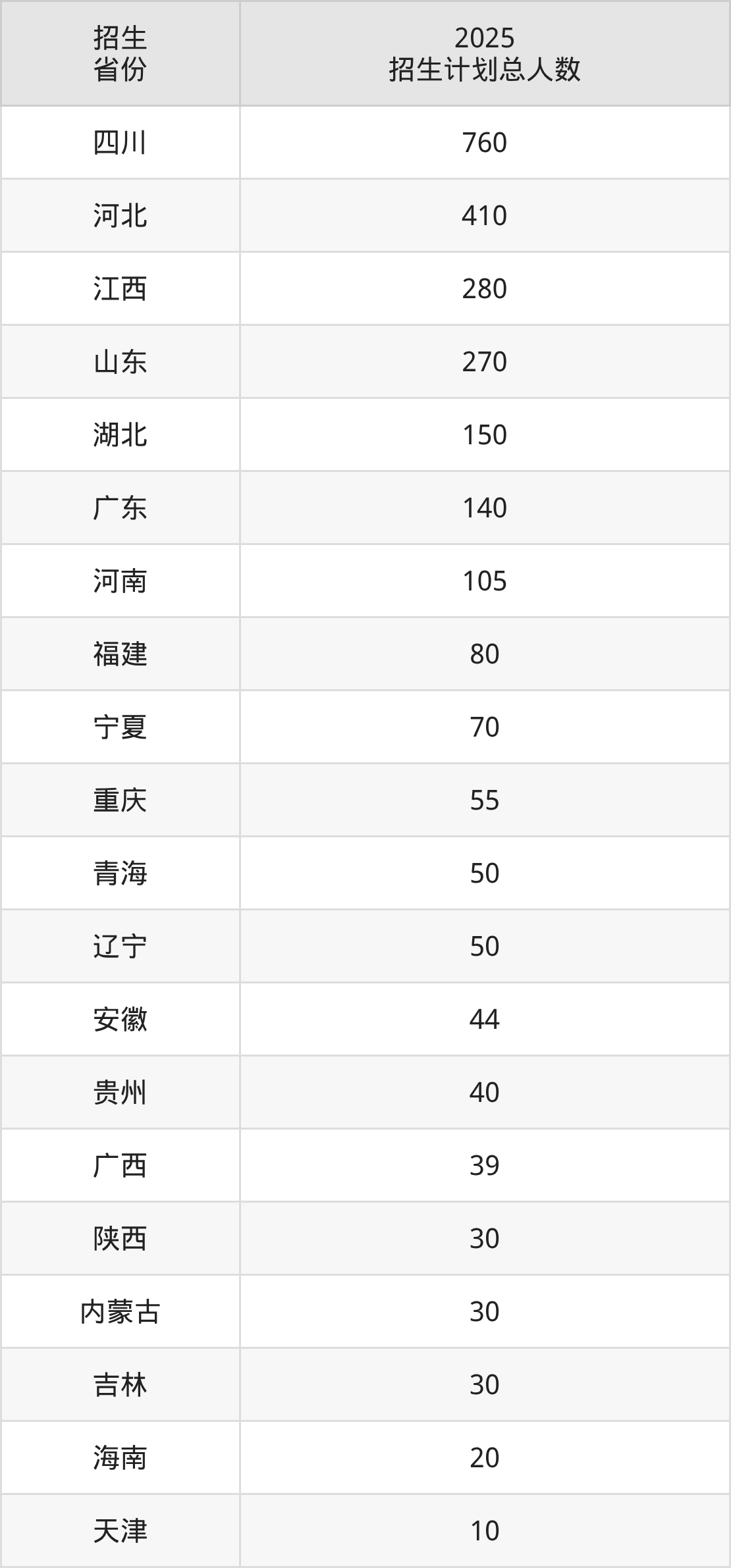 2025年天府新区信息职业学院面向全国25个省市开展专科招生;招生专业共34个,招生人数共2707人。2025年在四川省招生计划总人数是760人,其中,天府新区信息职业学院在四川省招生人数最多的是新能源汽车技术。天府新区信息职业学院在各省具体招生人数情况如下表。