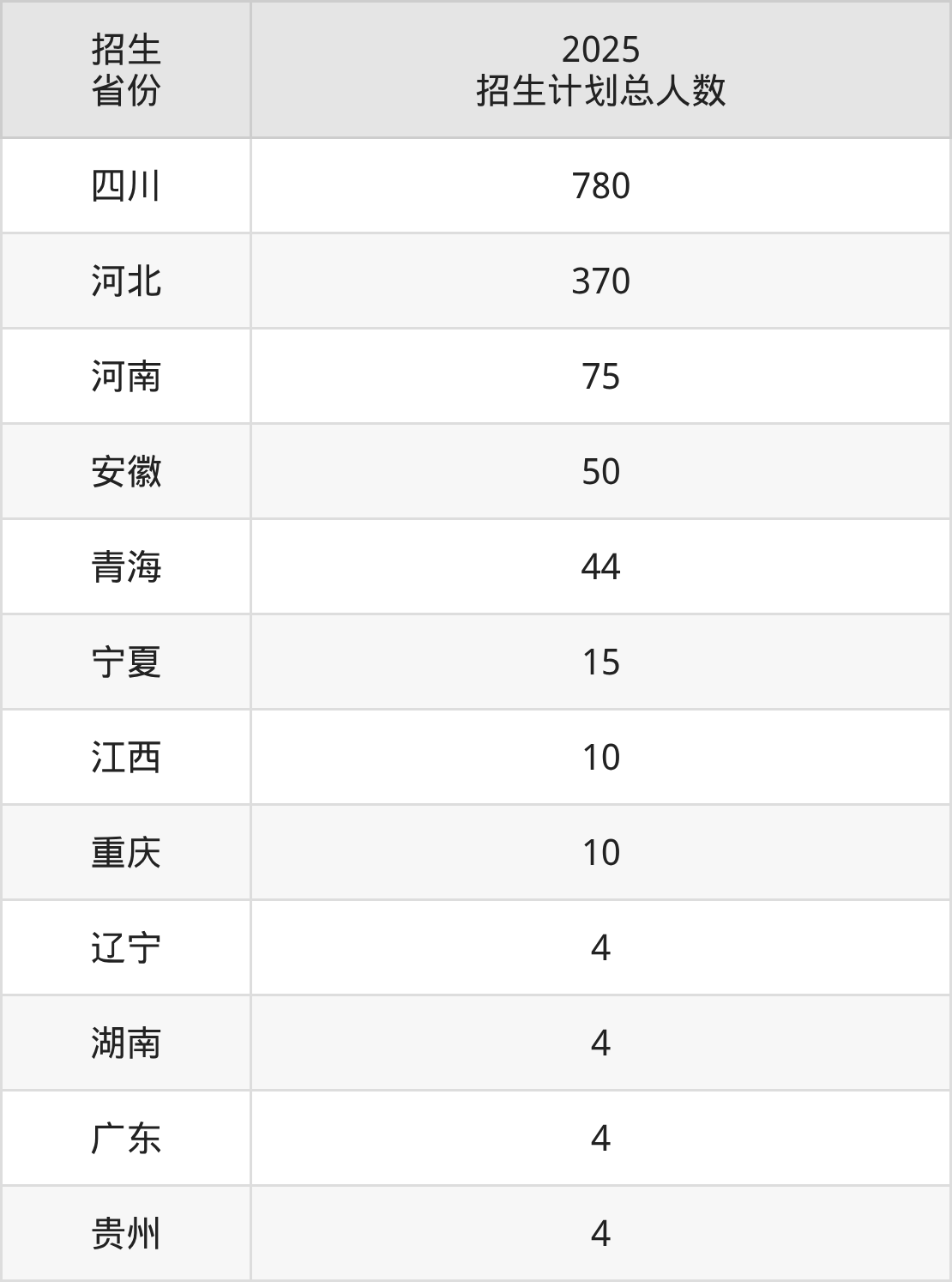 2025年德阳科贸职业学院面向全国12个省市开展专科招生;招生专业共29个,招生人数共1370人。2025年在四川省招生计划总人数是780人,其中,德阳科贸职业学院在四川省招生人数最多的是口腔医学技术。德阳科贸职业学院在各省具体招生人数情况如下表。