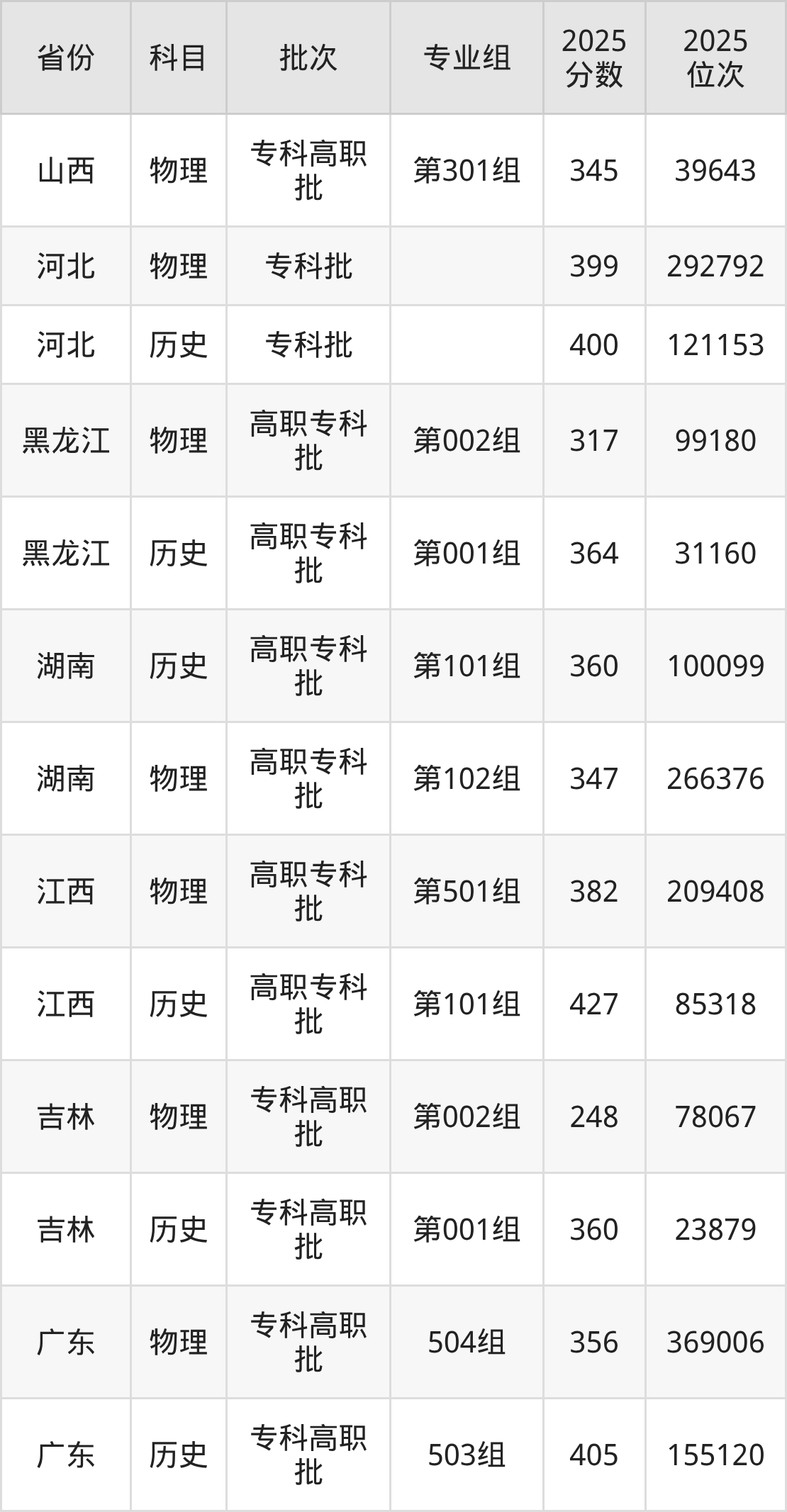 下面是2025年安阳职业技术学院全国录取分数线一览表,请查阅。