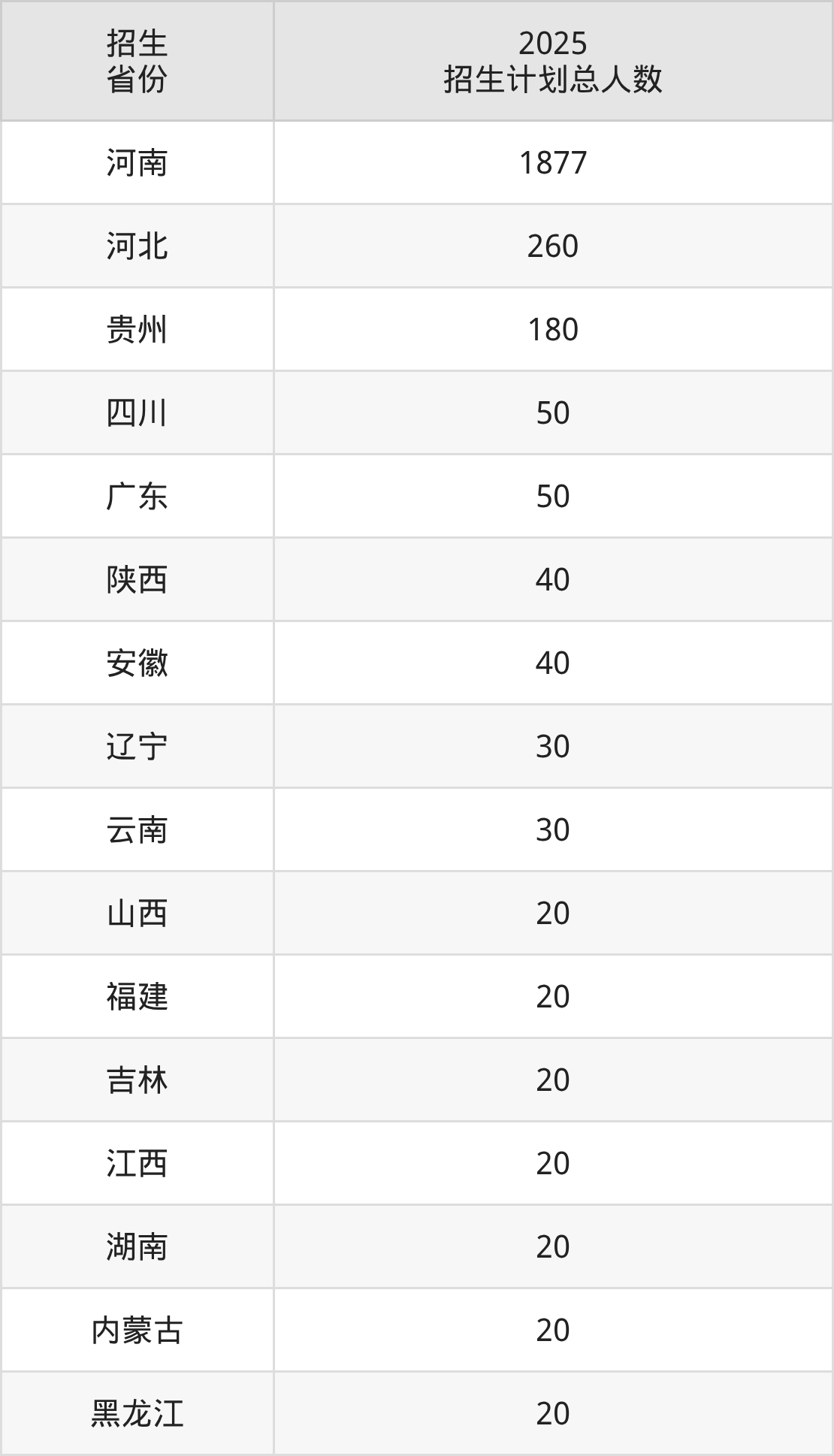 2025年安阳职业技术学院面向全国21个省市开展专科招生;招生专业共48个,招生人数共2742人。2025年在河南省招生计划总人数是1877人,其中,安阳职业技术学院在河南省招生人数最多的是护理。安阳职业技术学院在各省具体招生人数情况如下表。