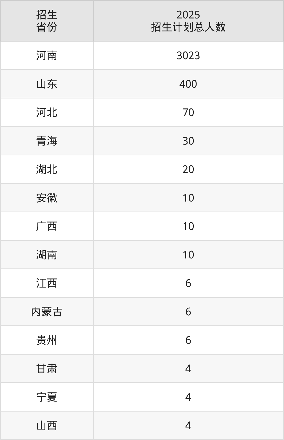2025年南阳职业学院面向全国14个省市开展专科招生;招生专业共42个,招生人数共3603人。2025年在河南省招生计划总人数是3023人,其中,南阳职业学院在河南省招生人数最多的是中药学。南阳职业学院在各省具体招生人数情况如下表。