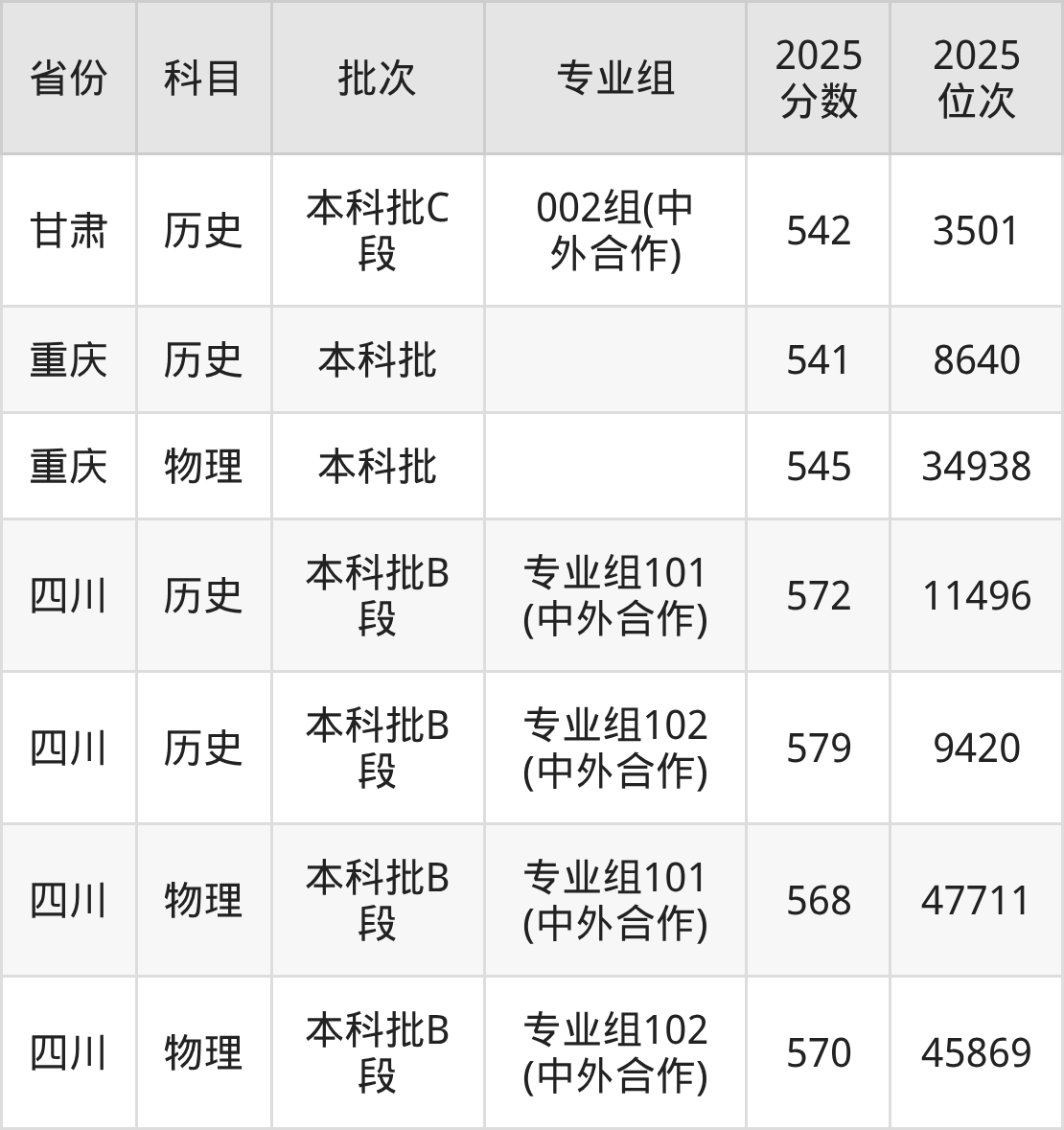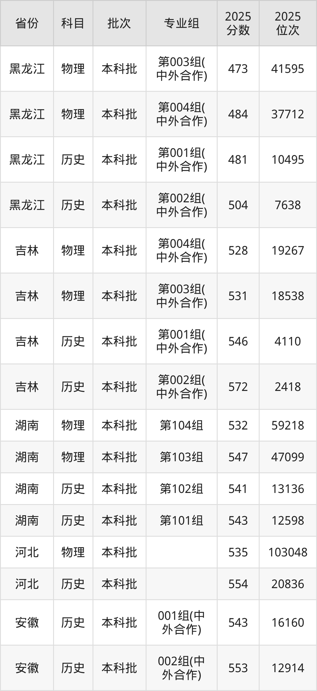 英语(中外合作办学):2025年投档录取最低分为554分。