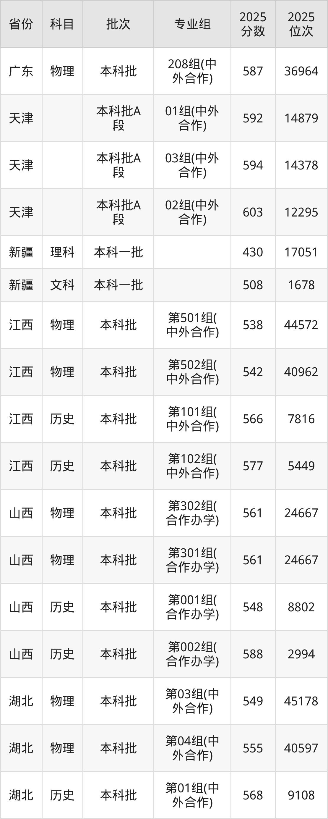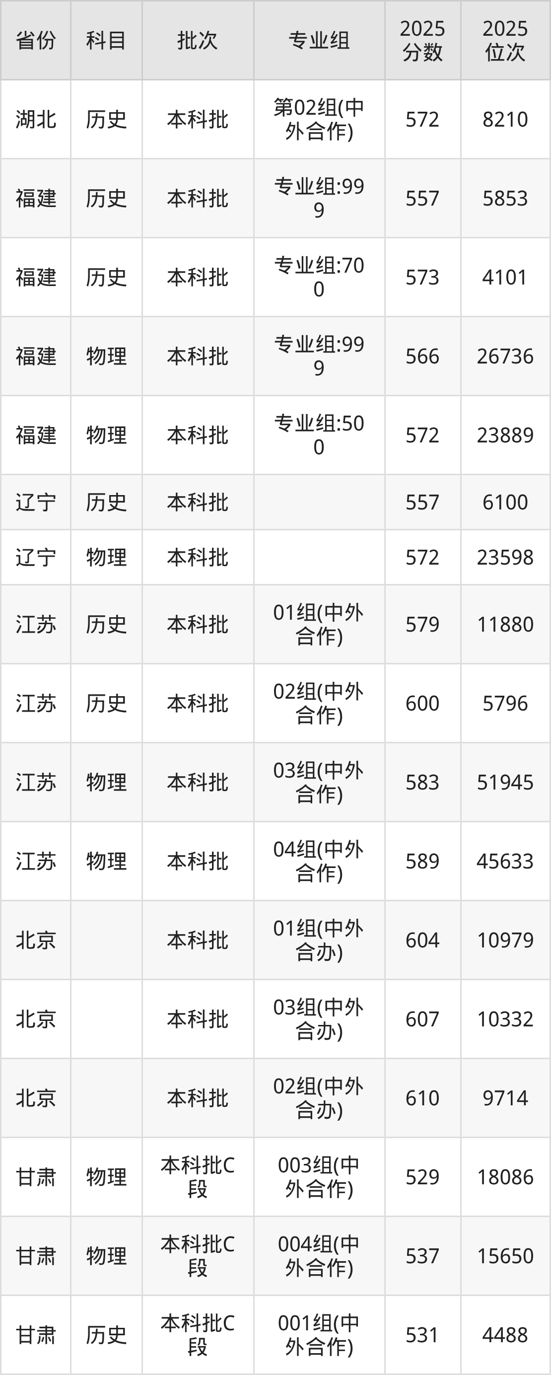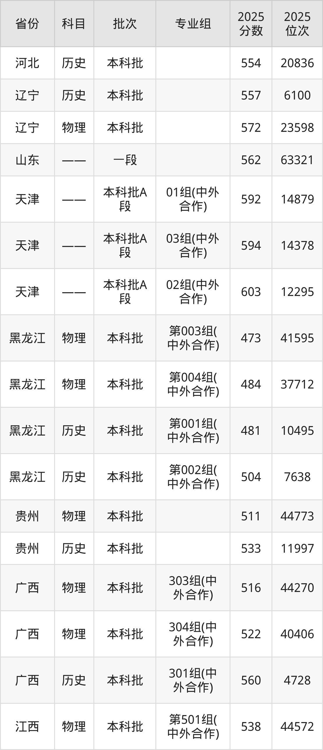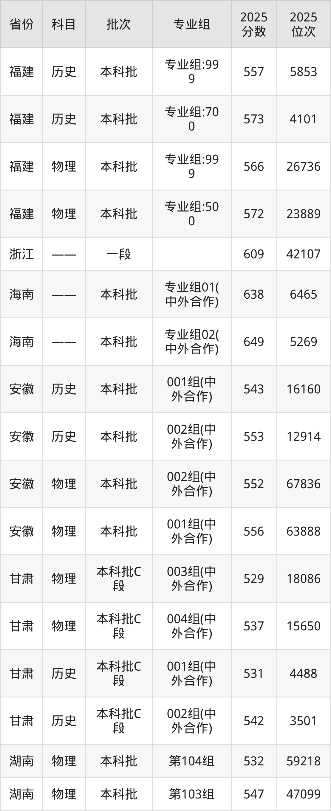 下面是2025年宁波诺丁汉大学全国录取分数线一览表,请查阅。