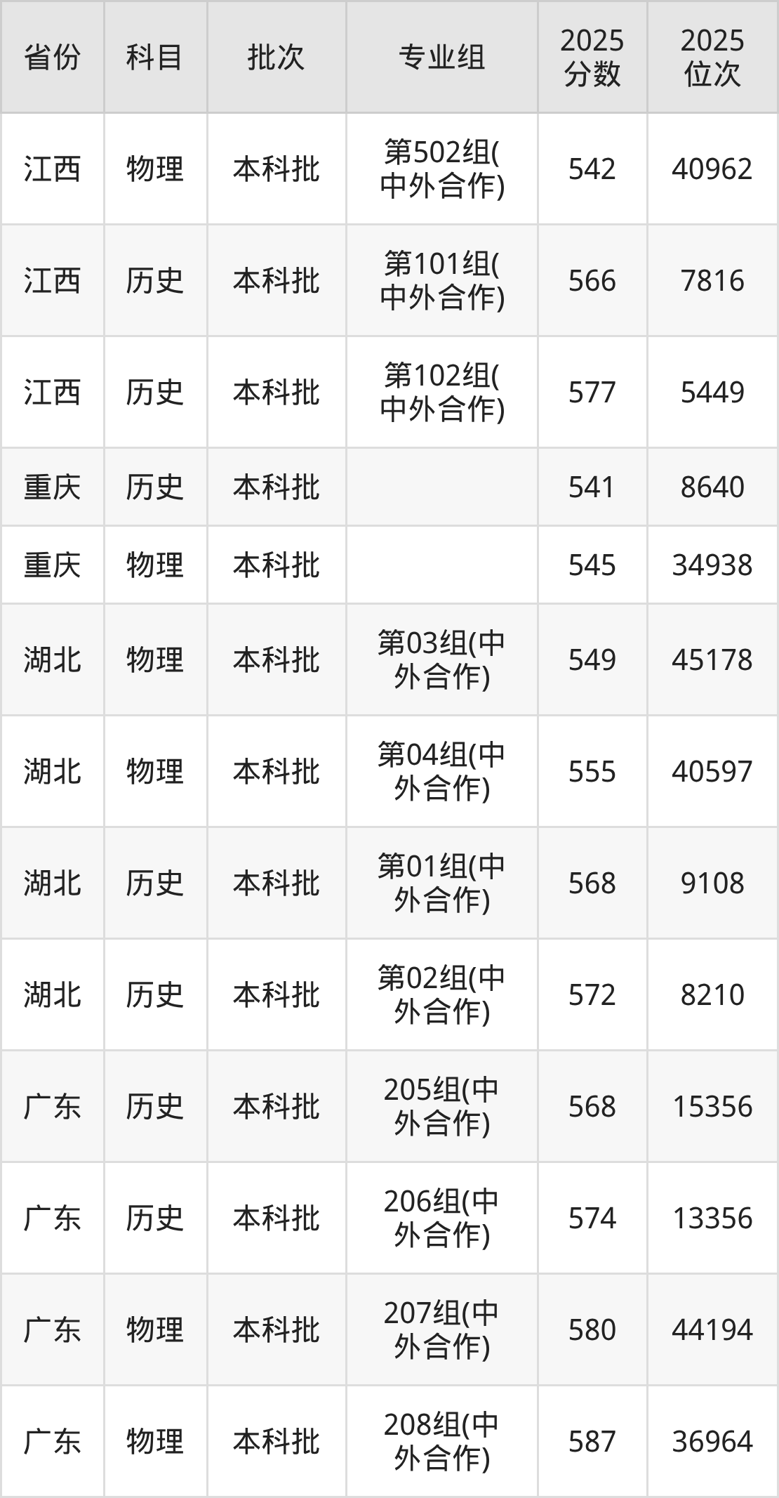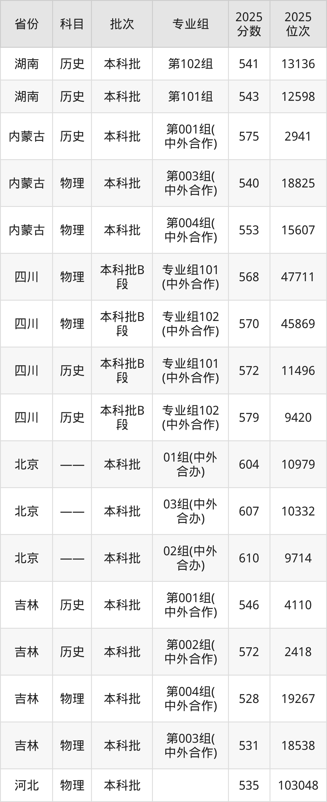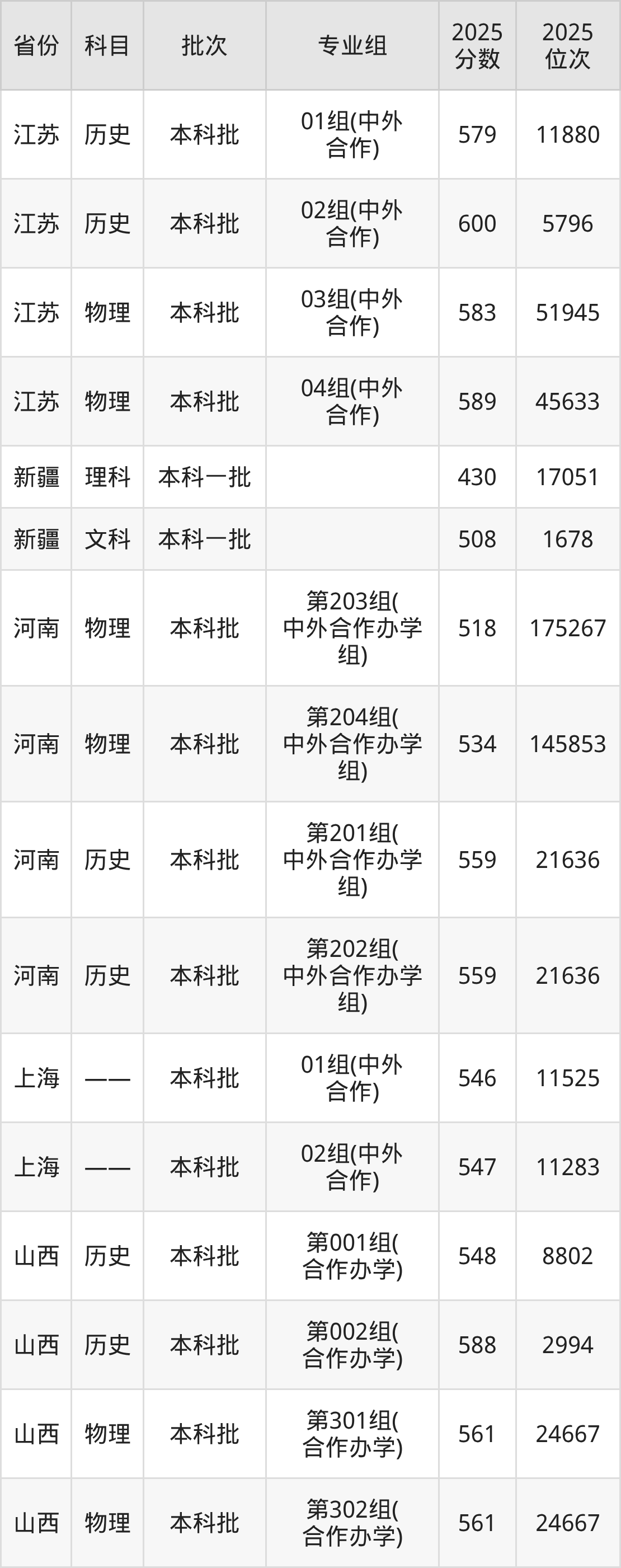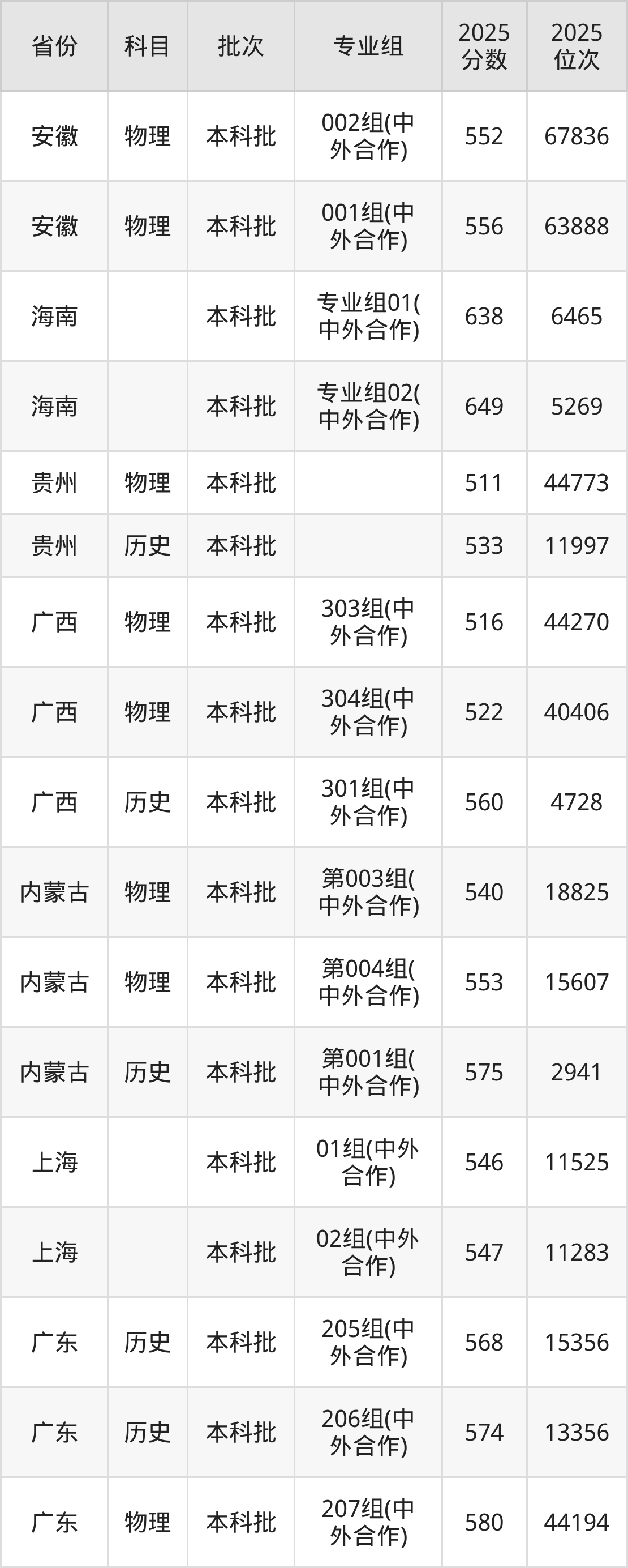 下面是2025年宁波诺丁汉大学全国录取分数线一览表,请查阅。