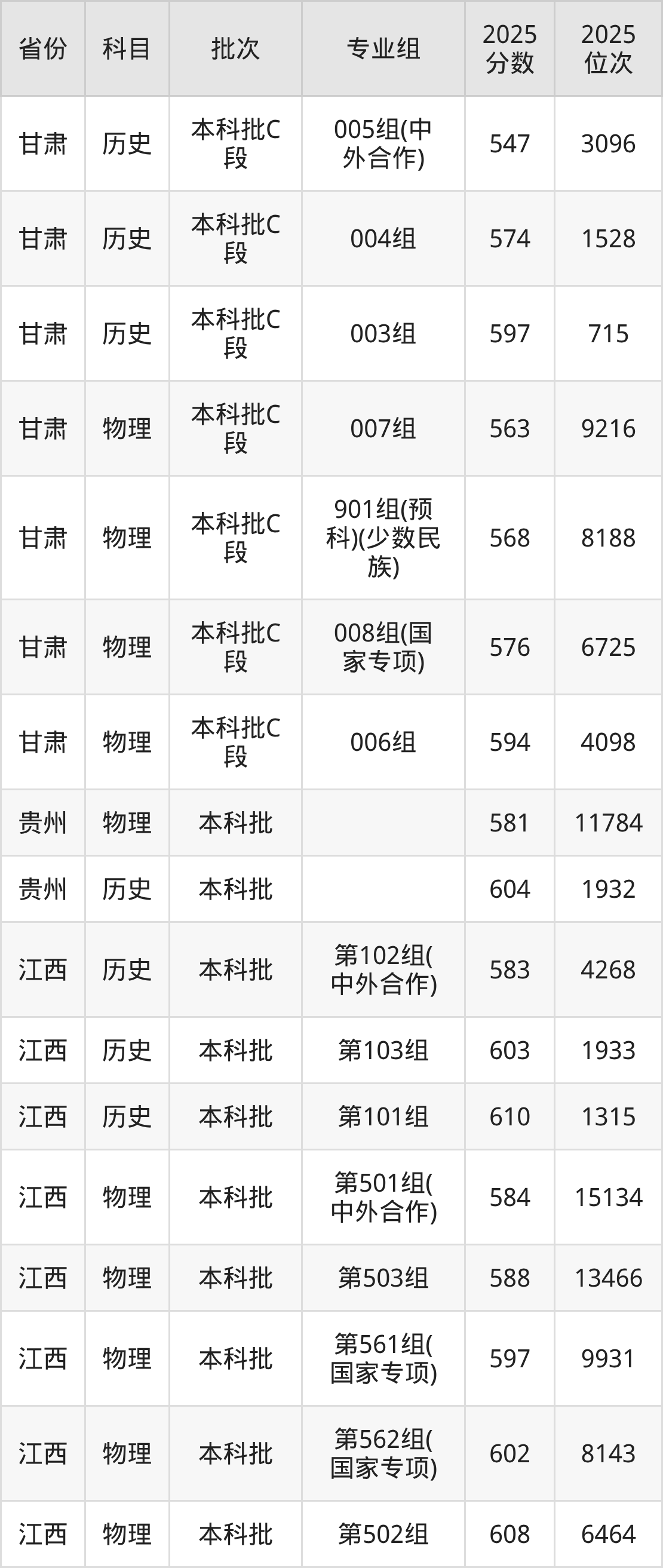 中国农业大学第102组(中外合作):2025年投档录取最低分为583分,录取最低位次为4268名。