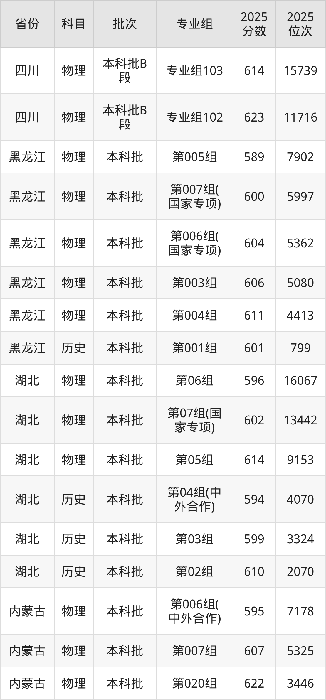中国农业大学专业组102:2025年投档录取最低分为605分,录取最低位次为3772名。