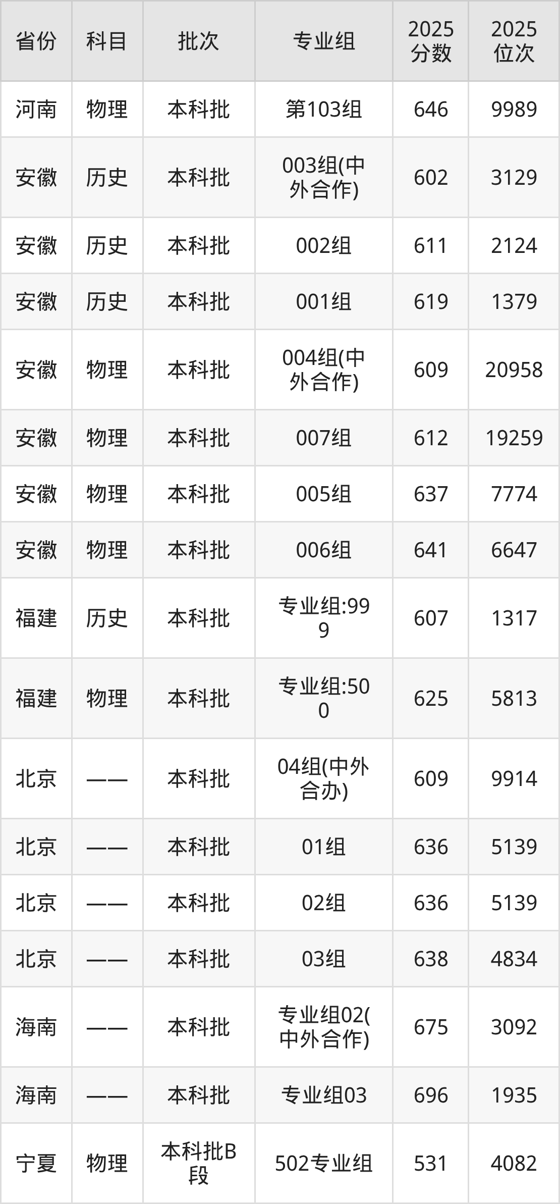 中国农业大学03组(中外合作办学):2025年投档录取最低分为620分,录取最低位次为19004名。