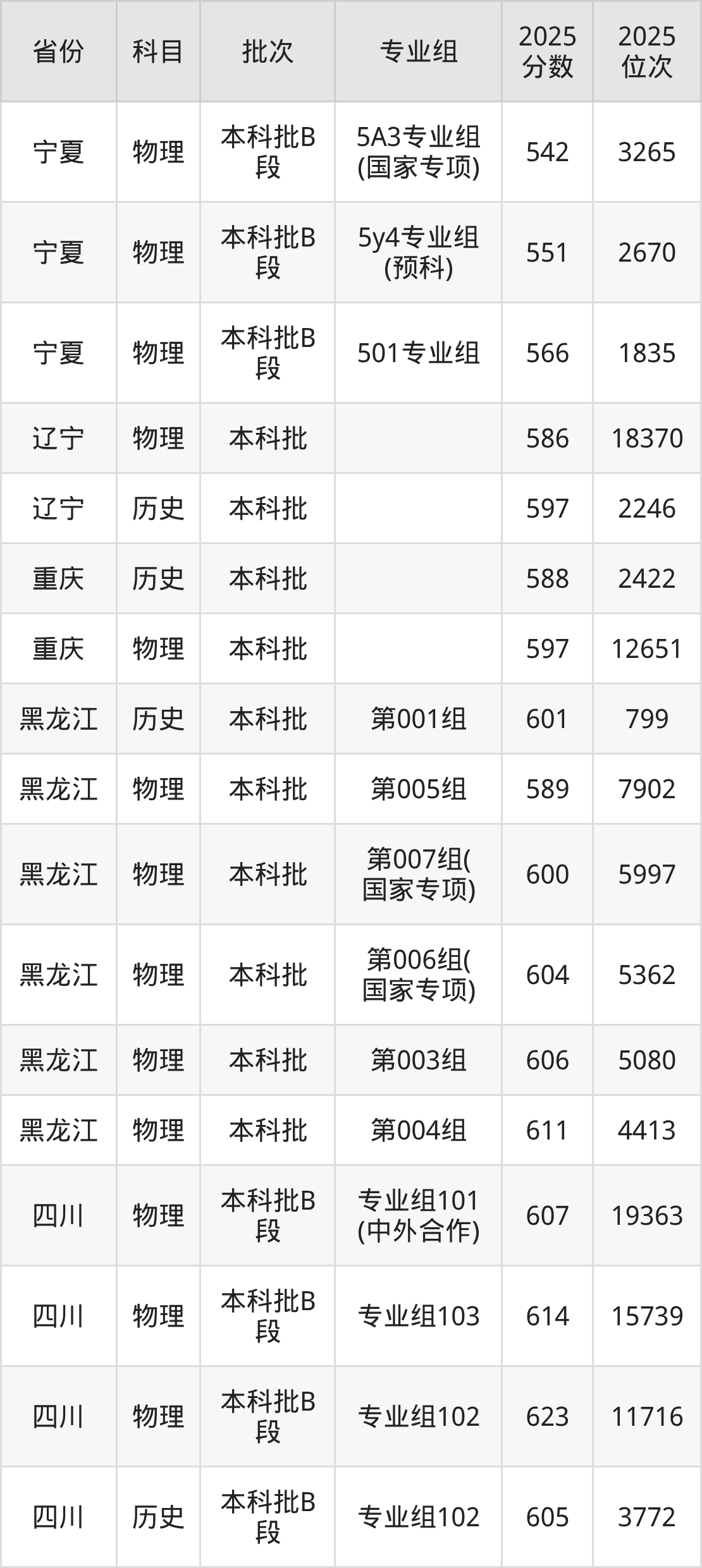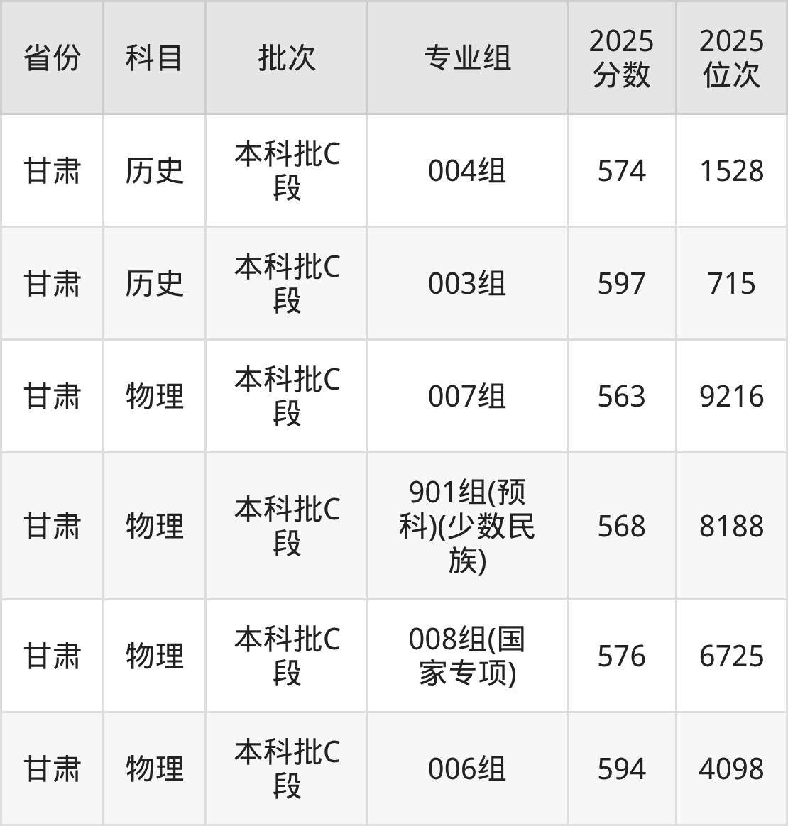 中国农业大学008专业组(国家专项计划):2025年投档录取最低分为576分,录取最低位次为6725名。