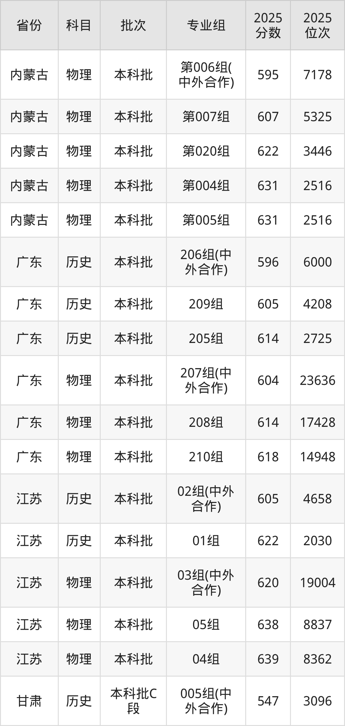 中国农业大学第006组(中外合作):2025年投档录取最低分为595分,录取最低位次为7178名。