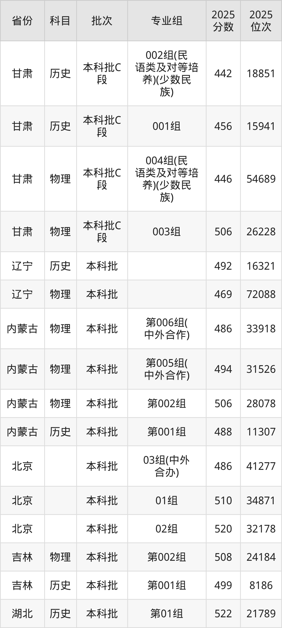 2025年投档录取最低分为509分,录取最低位次为15556名。