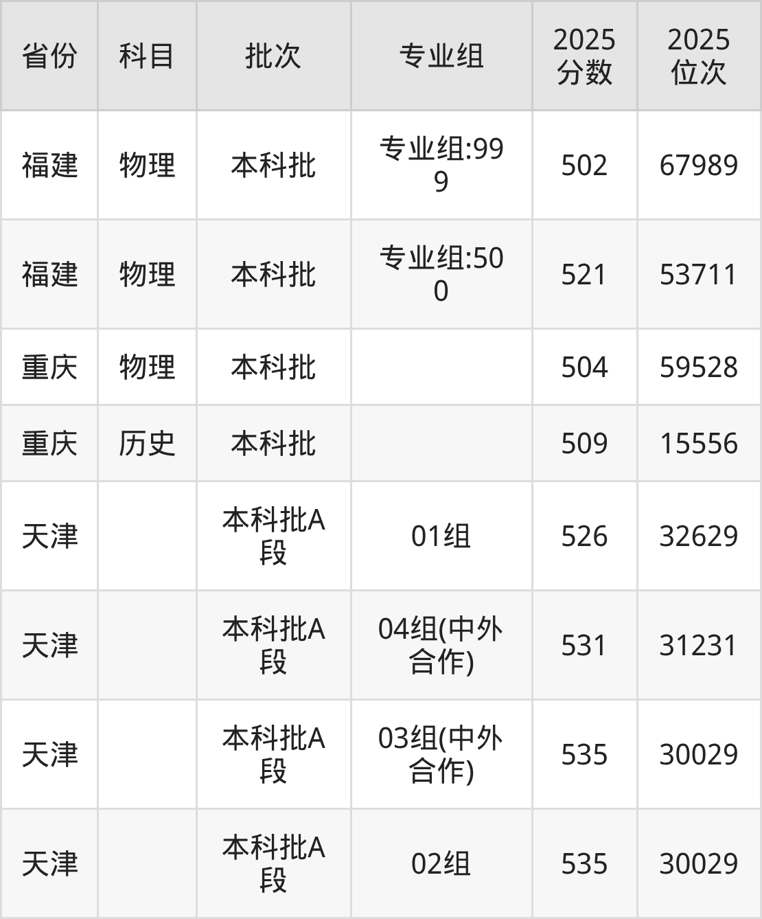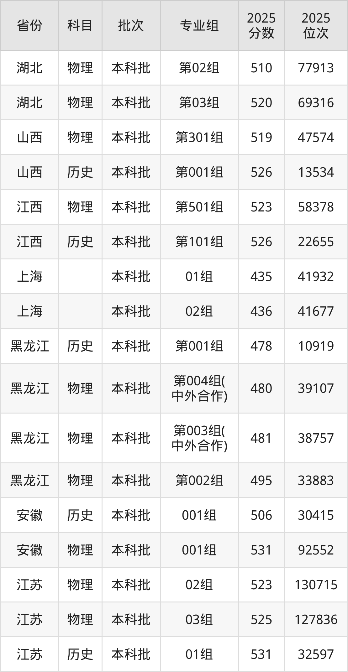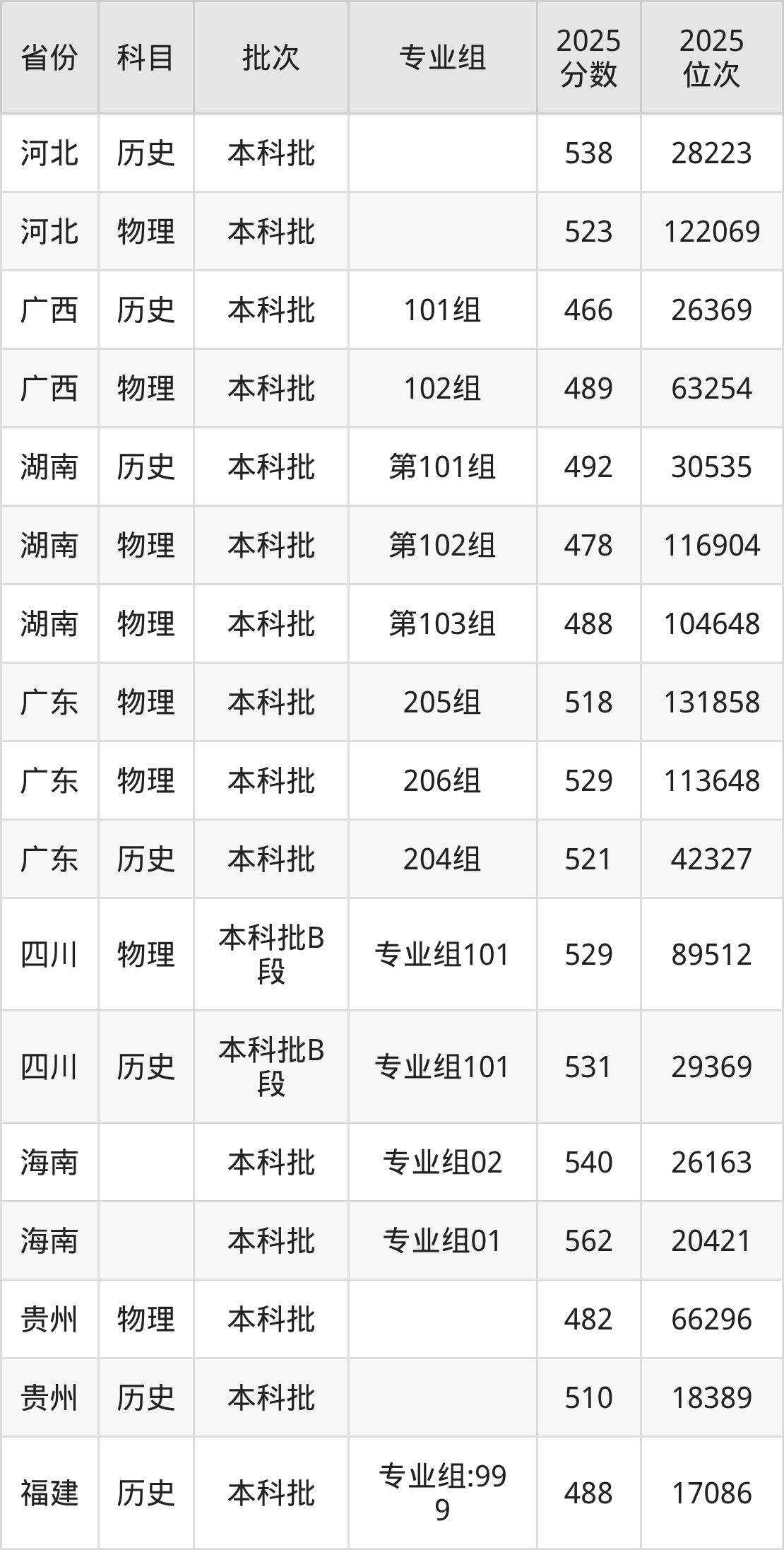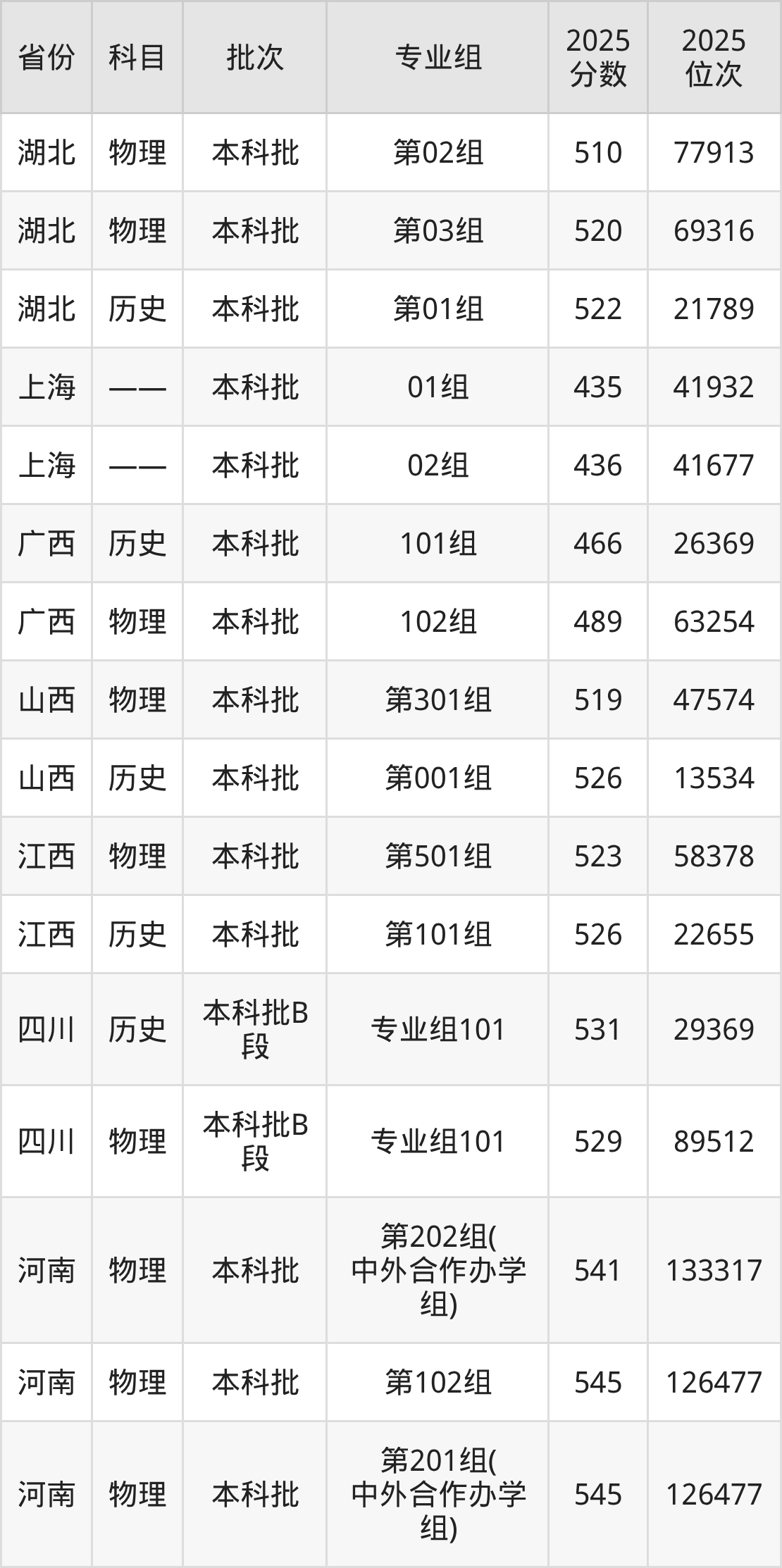 2025年投档录取最低分为510分,录取最低位次为18389名。