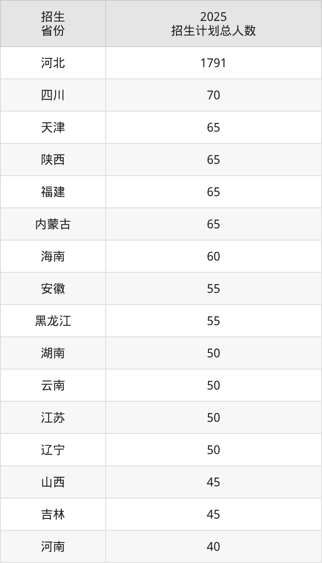 2025年北华航天工业学院面向全国25个省市开展本科招生;招生专业共40个,招生人数共2802人。