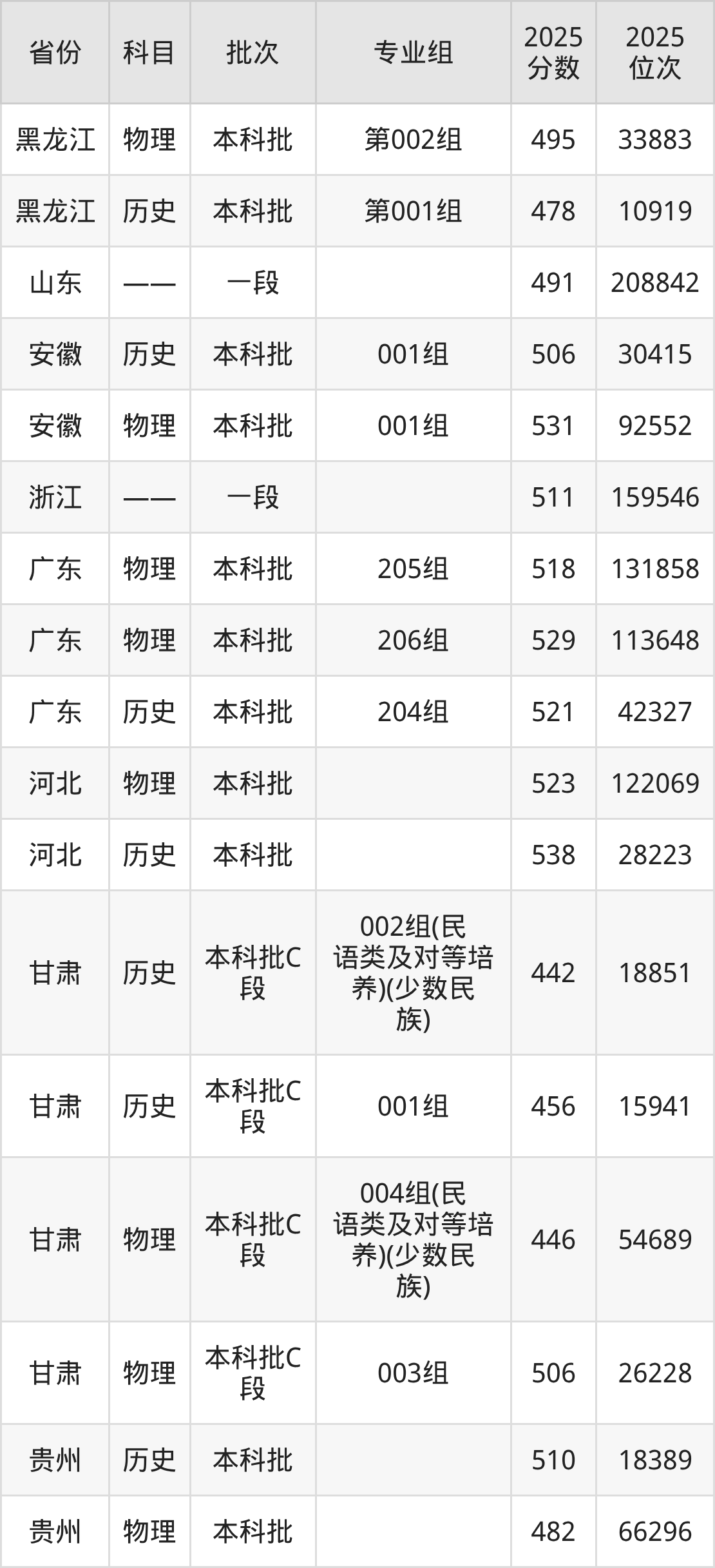 2025年投档录取最低分为492分,录取最低位次为16321名。
