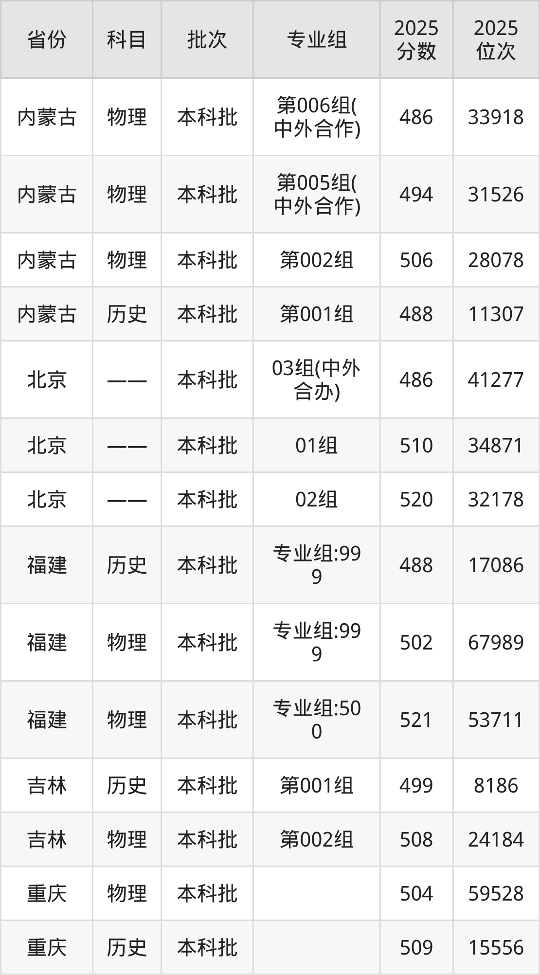 北华航天工业学院第004组(中外合作):2025年投档录取最低分为480分,录取最低位次为39107名。