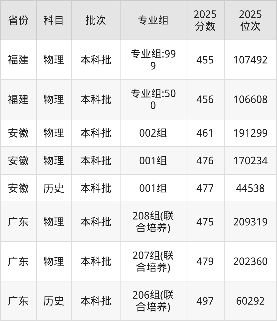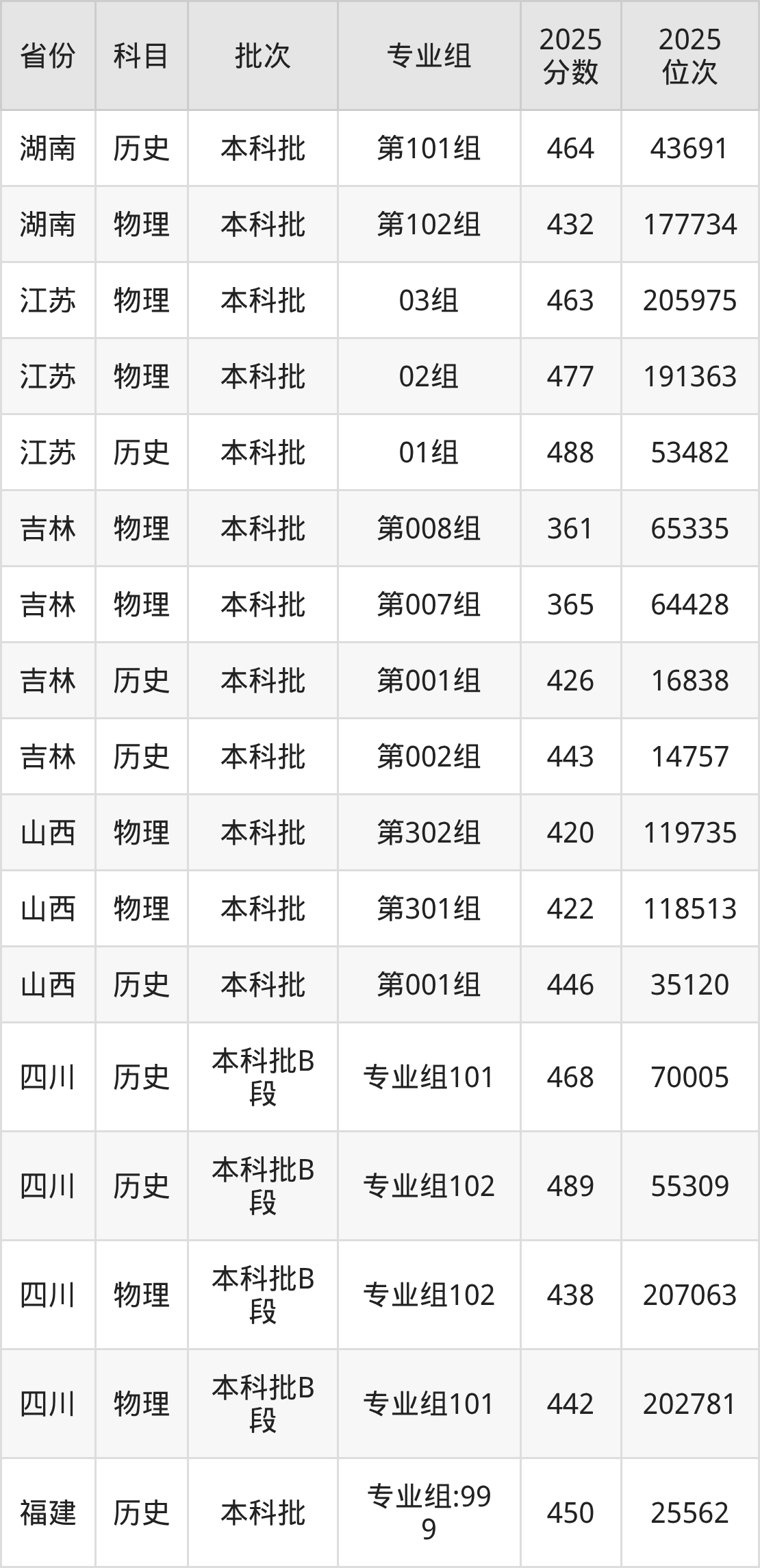 普通类本科物理类最低463分,本科历史类最低488分