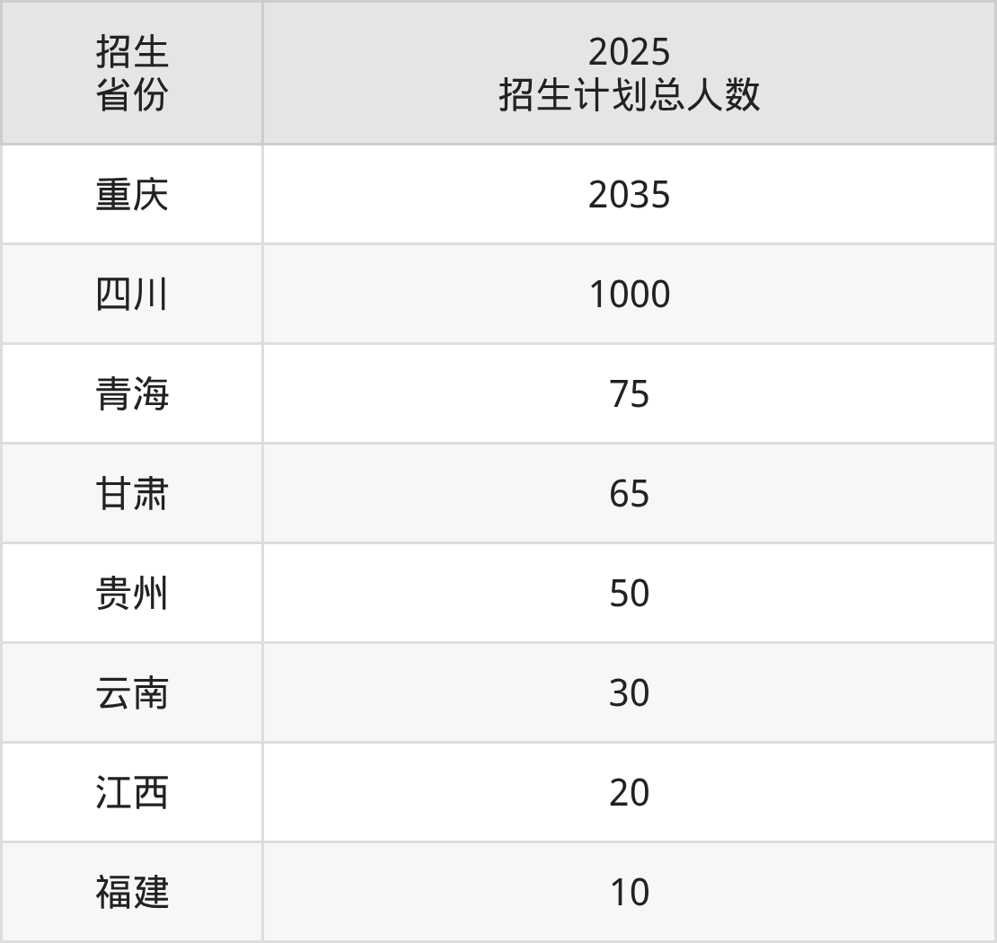 2025年重庆工贸职业技术学院面向全国8个省市开展专科招生;招生专业共40个,招生人数共3285人。