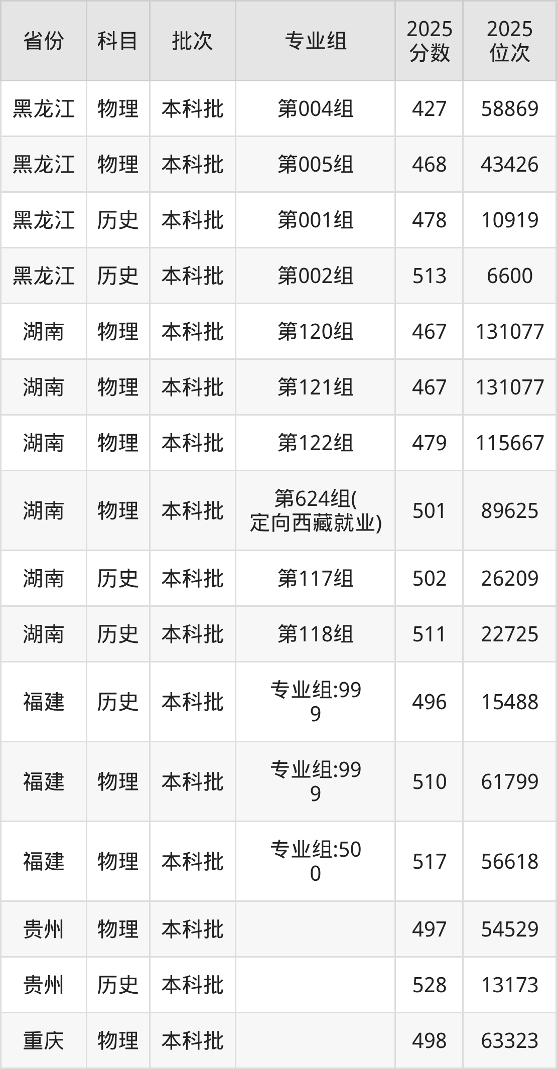 长沙师范学院第624组(定向西藏就业):2025年投档录取最低分为501分,录取最低位次为89625名。