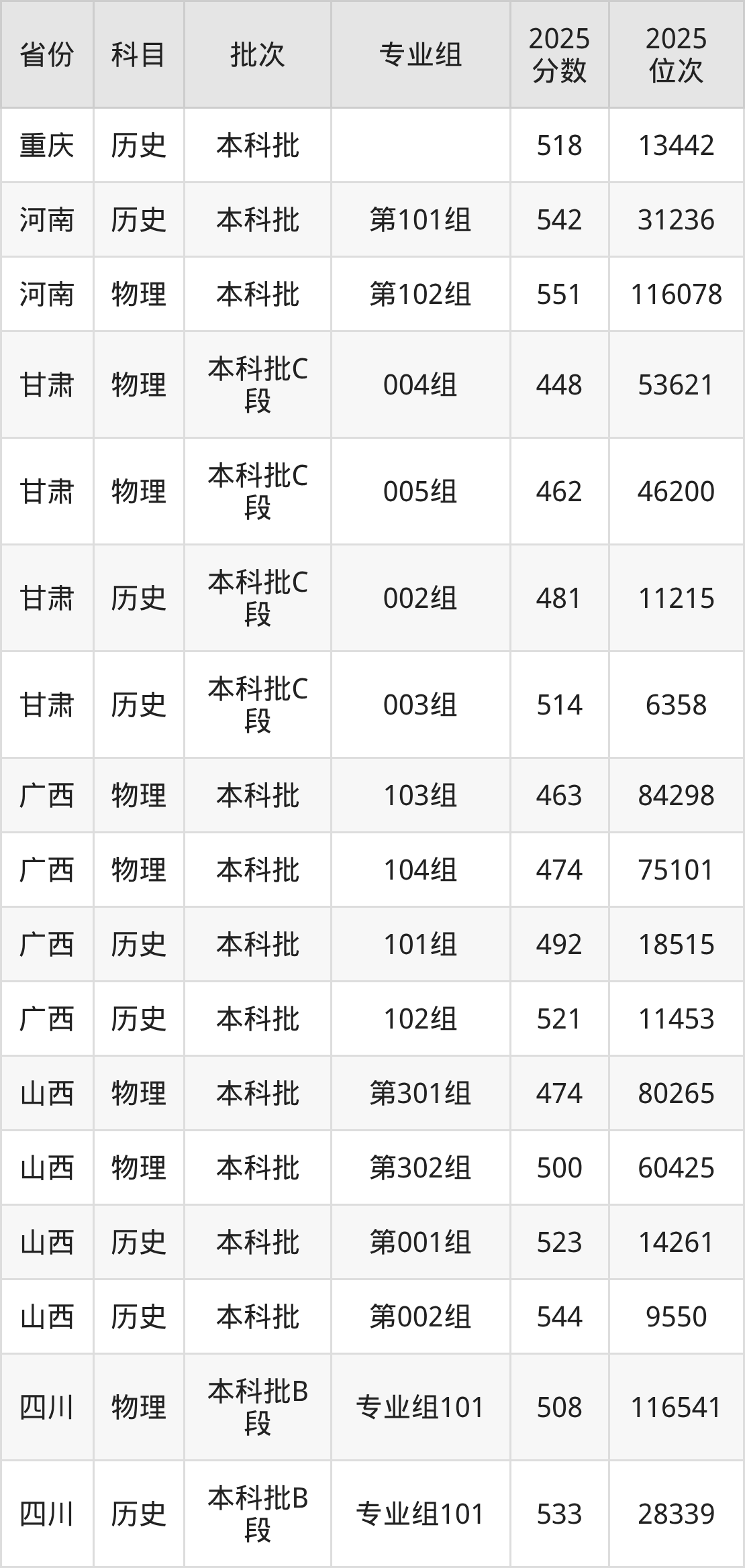 2025年投档录取最低分为528分,录取最低位次为13173名。