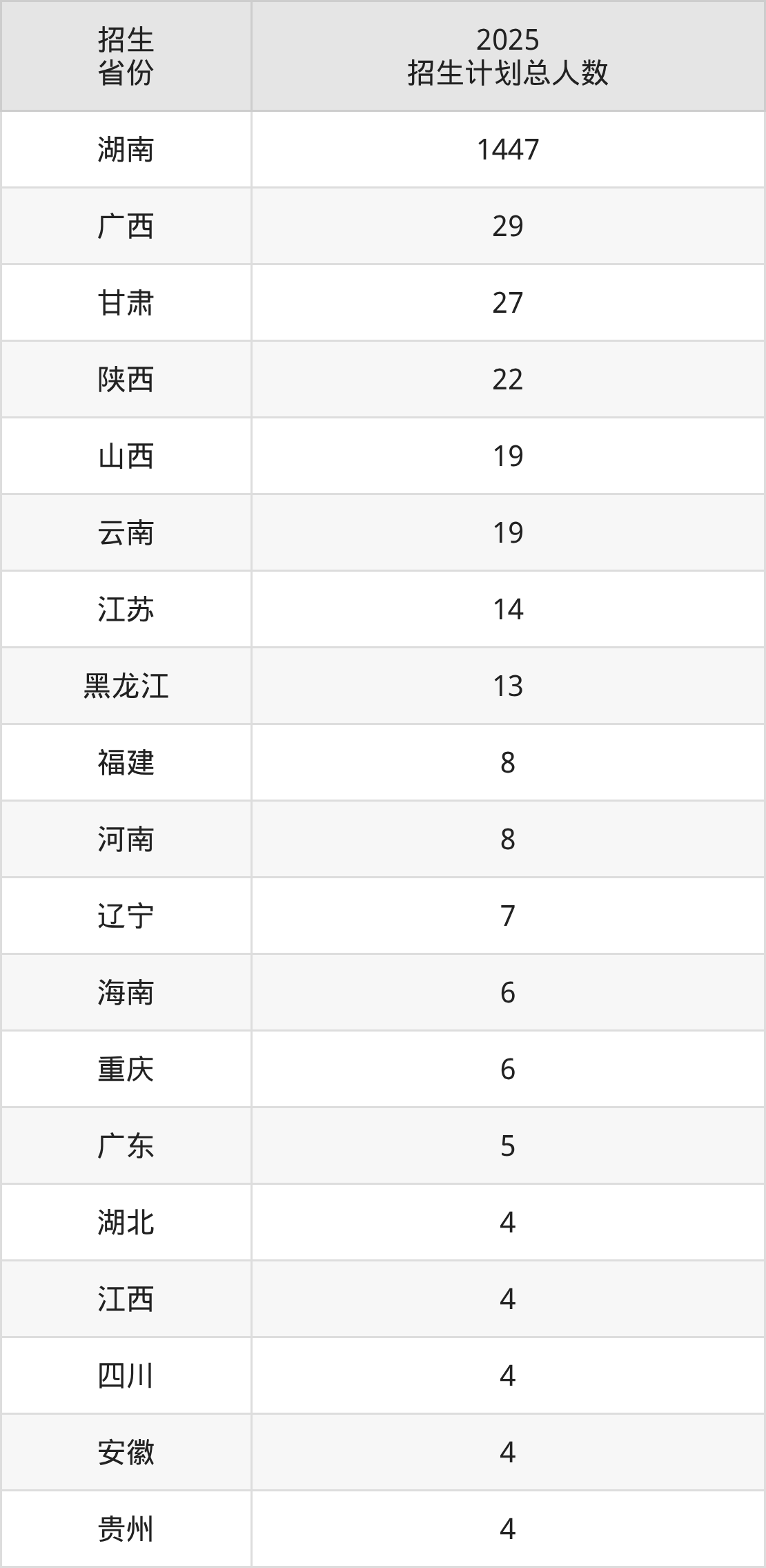 2025年长沙师范学院面向全国19个省市开展本科招生;招生专业共22个,招生人数共1650人。