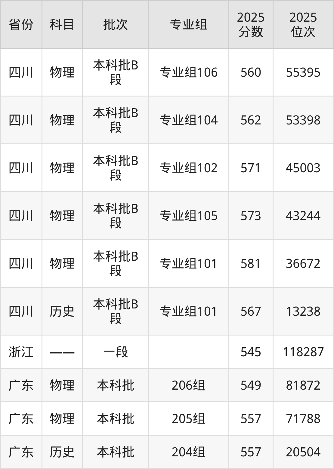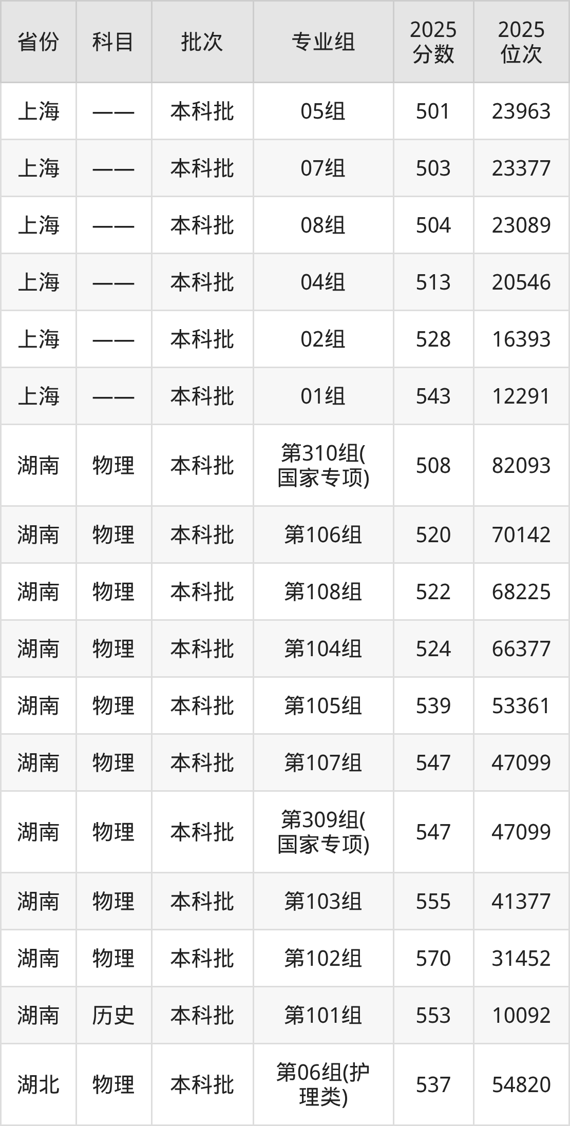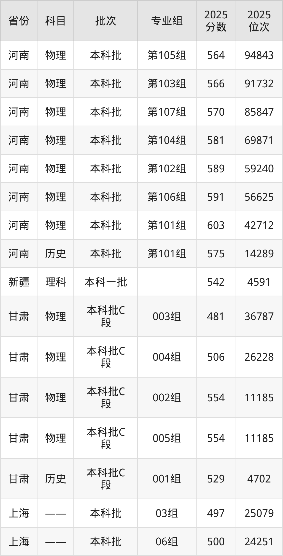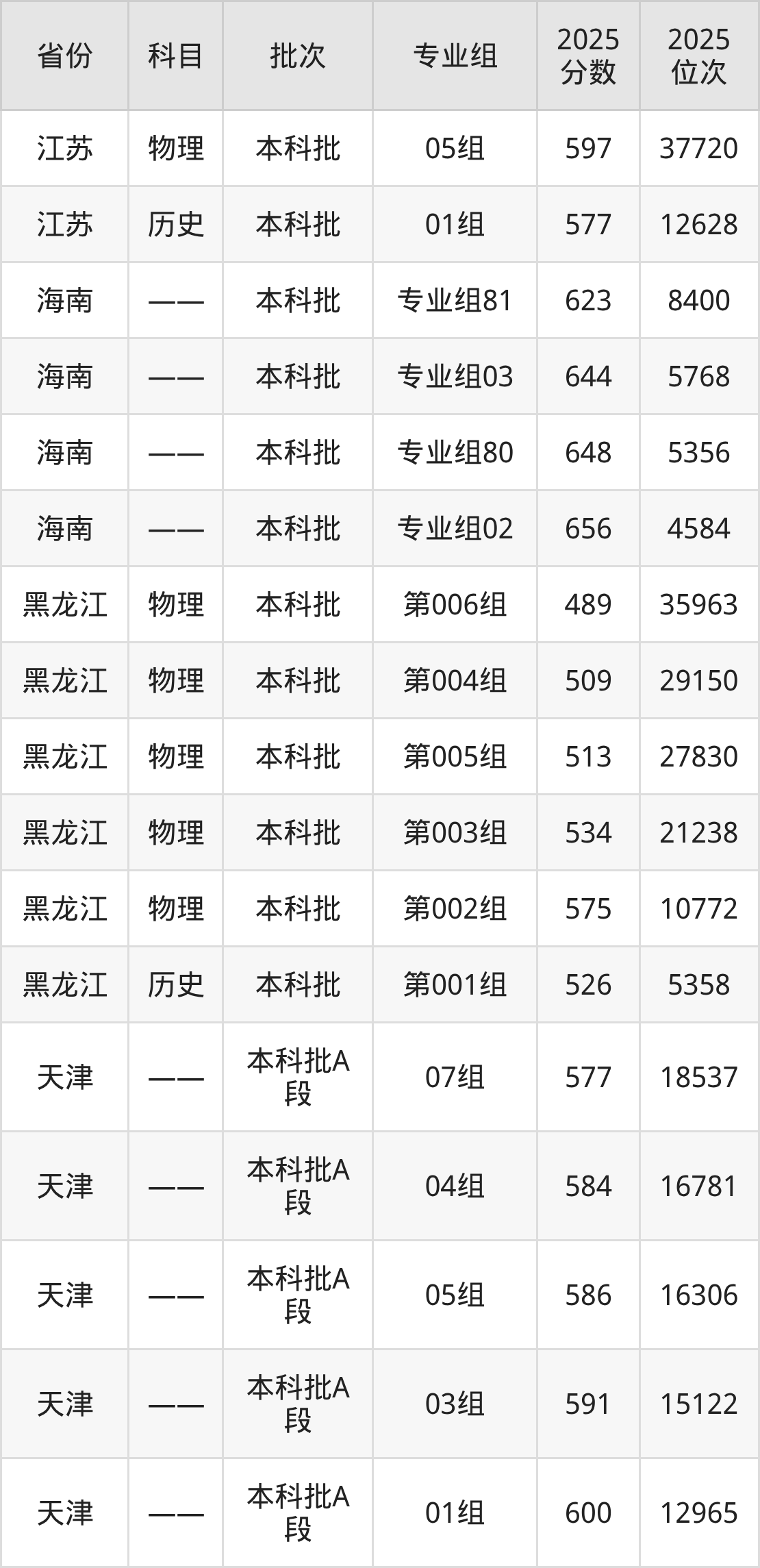 2025年在本科物理类进行招生,各专业组分数线详情如下: