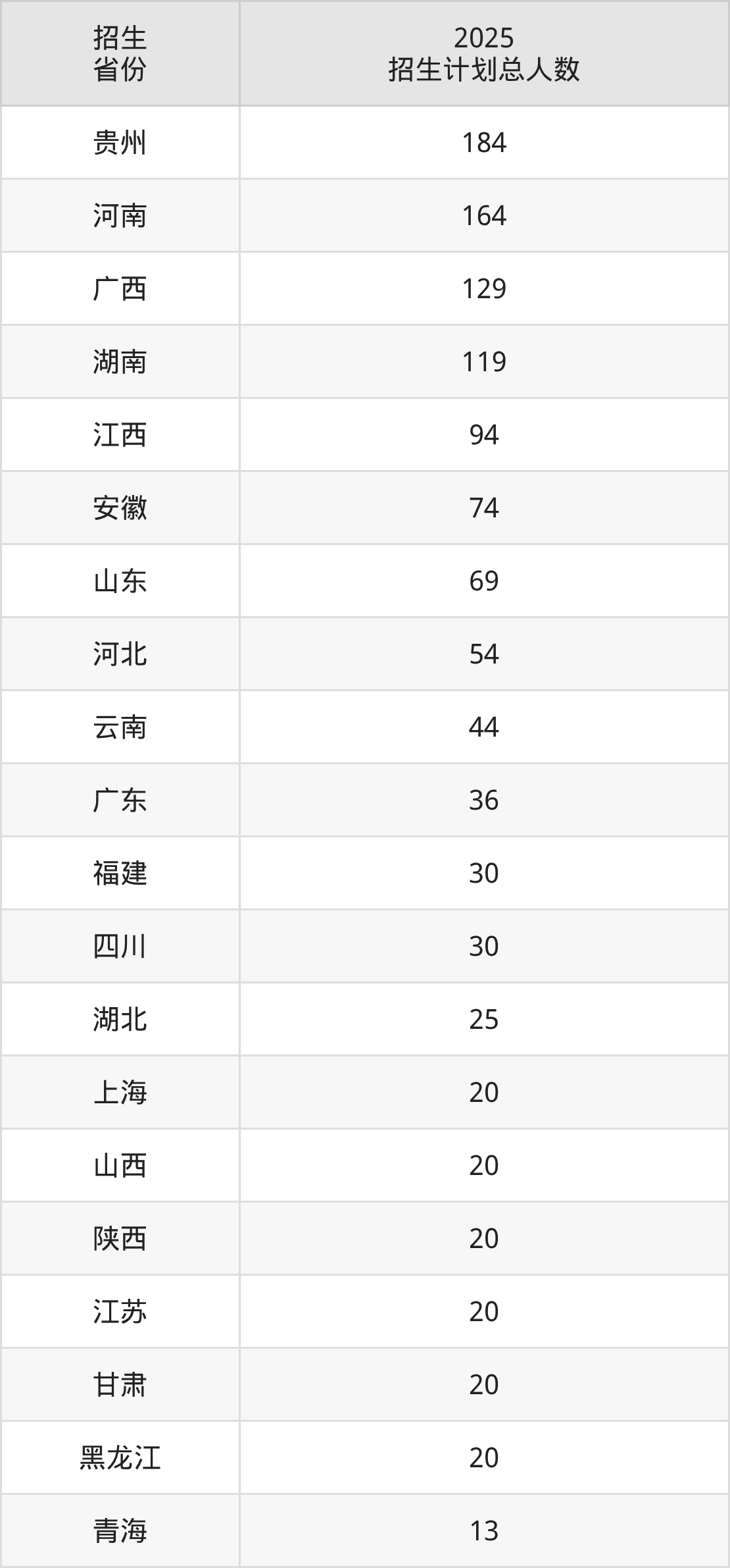 2025年浙江中医药大学面向全国24个省市开展本科招生;招生专业共27个,招生人数共1217人。浙江中医药大学在各省具体招生人数情况如下表。