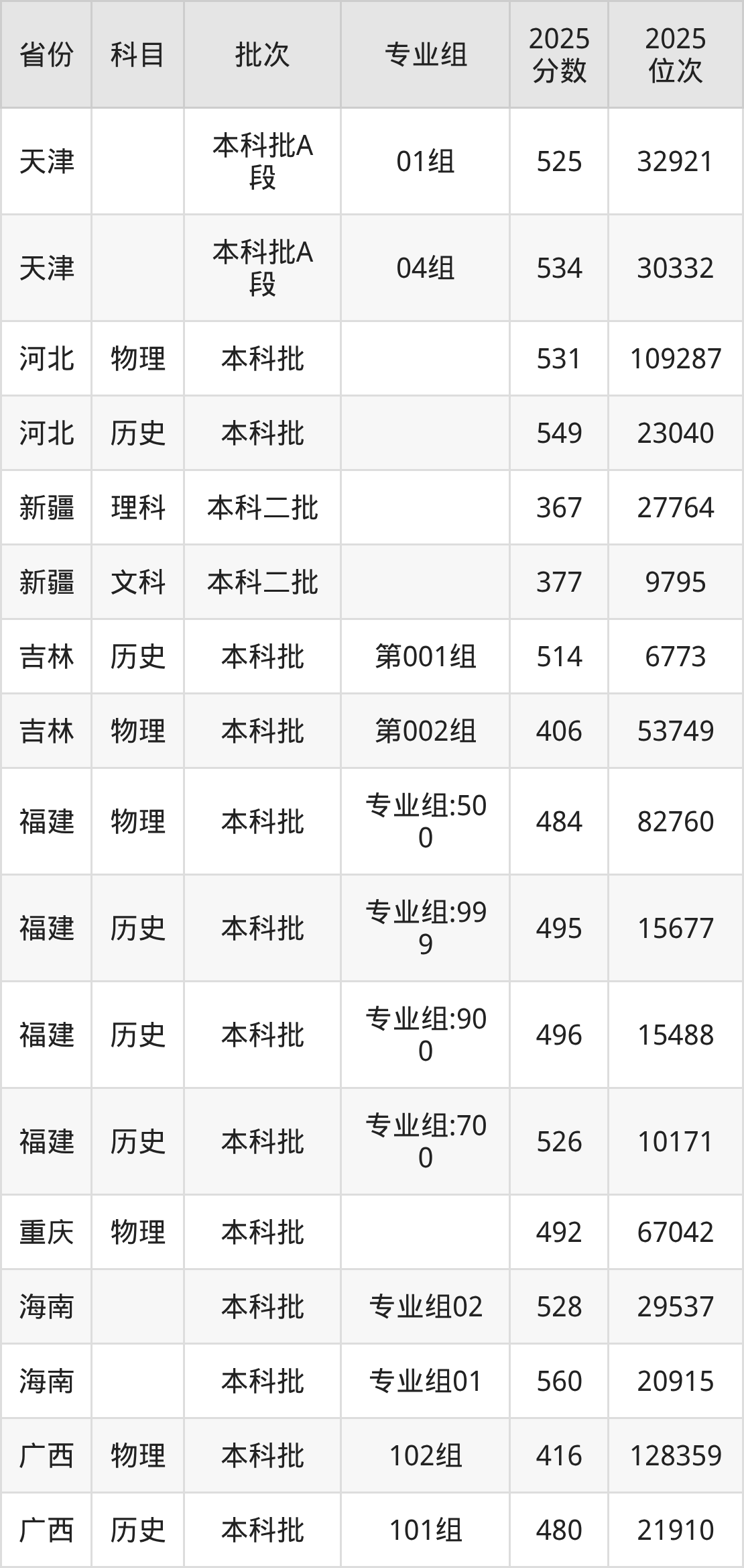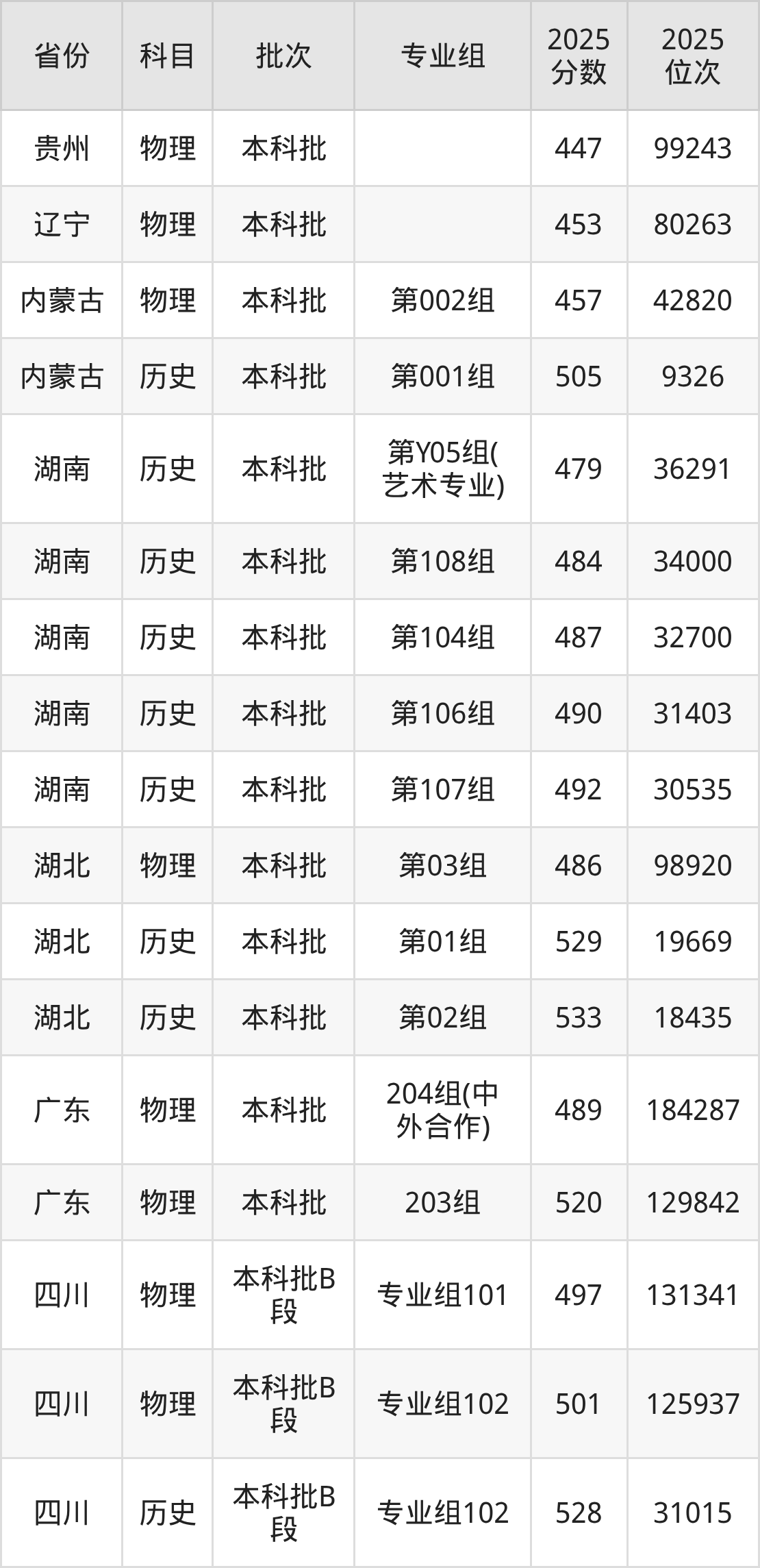 2025年投档录取最低分为377分,录取最低位次为9795名。