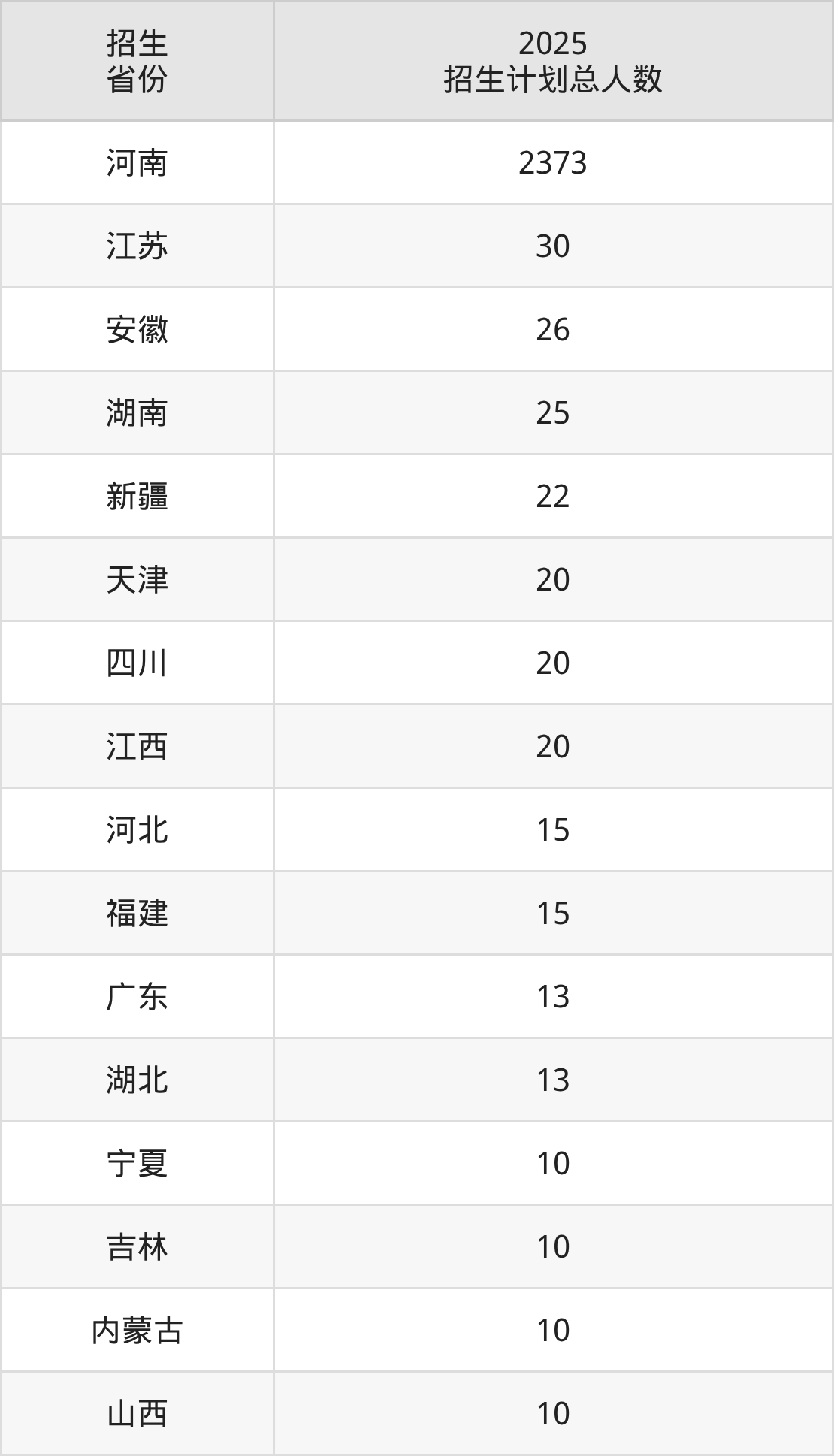 2025年信阳师范大学面向全国24个省市开展本科招生;招生专业共57个,招生人数共2706人。2025年在河南省招生计划总人数是2373人,其中,信阳师范大学在河南省招生人数最多的是物联网工程。信阳师范大学在各省具体招生人数情况如下表。