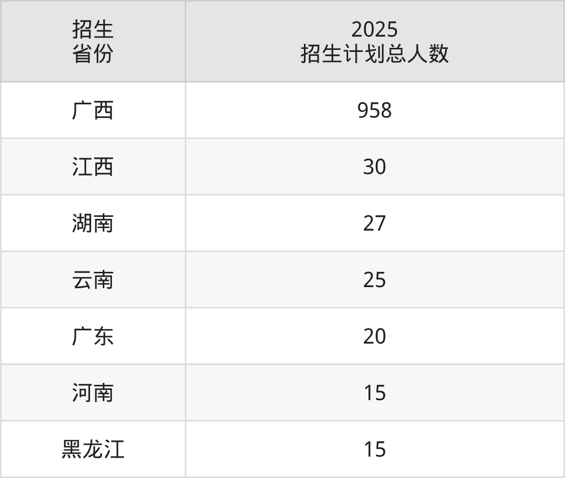 2025年广西信息职业技术学院面向全国7个省市开展专科招生;招生专业共19个,招生人数共1090人。2025年在广西壮族自治区招生计划总人数是958人,其中,广西信息职业技术学院在广西壮族自治区招生人数最多的是集成电路技术。广西信息职业技术学院在各省具体招生人数情况如下表。