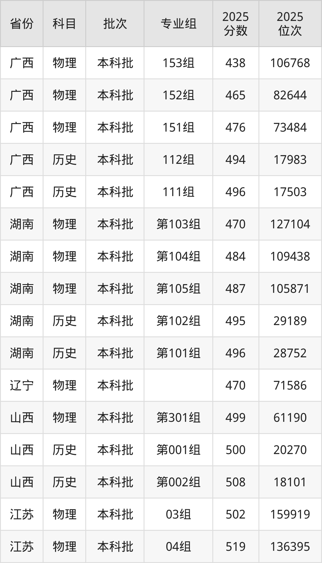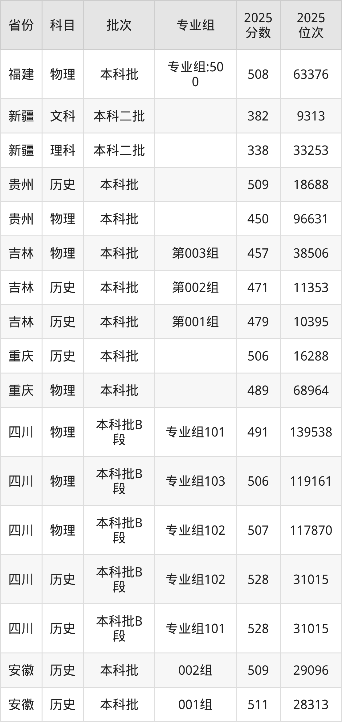 2025年投档录取最低分为338分,录取最低位次为33253名。