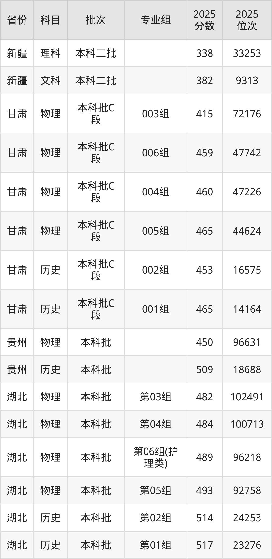 普通类本科物理类最低411分,本科历史类最低464分