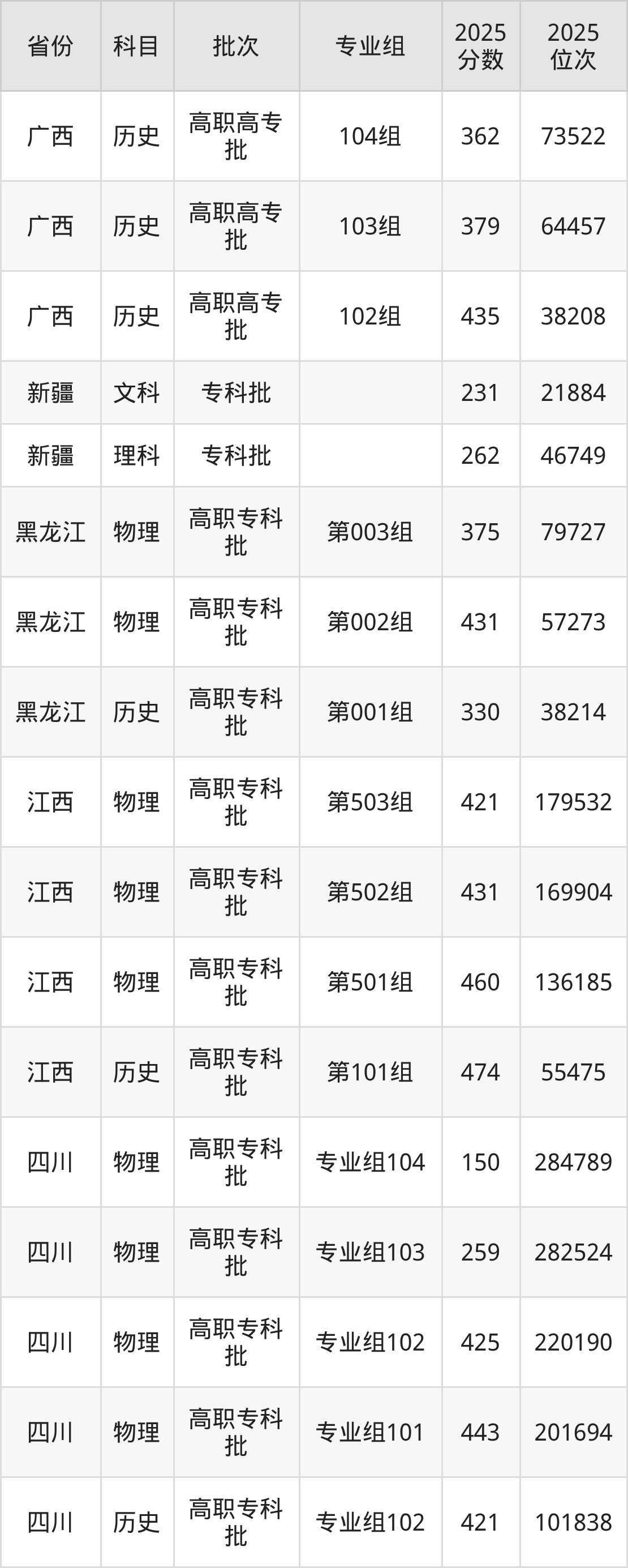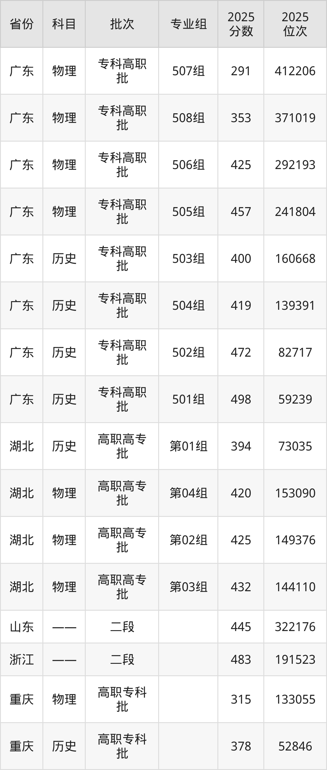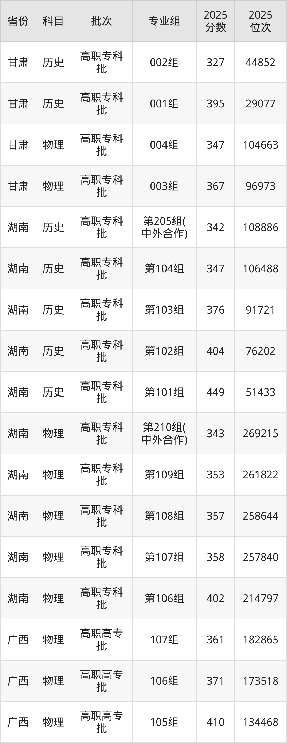永州职业技术学院002专业组:2025年投档录取最低分为323分,录取最低位次为17347名。
