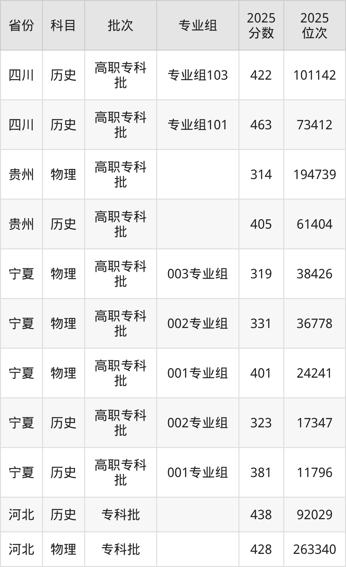 永州职业技术学院专业组102:2025年投档录取最低分为425分,录取最低位次为220190名。