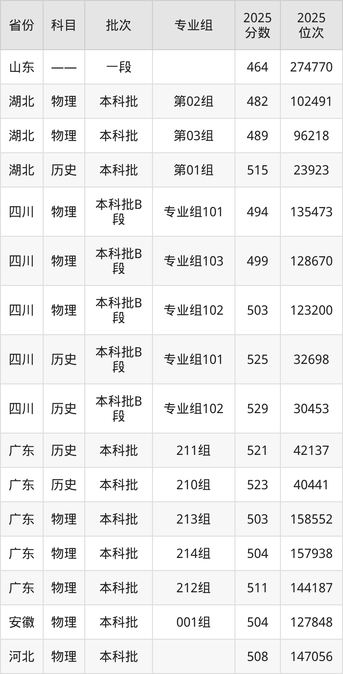 普通类本科物理类最低482分,本科历史类最低515分