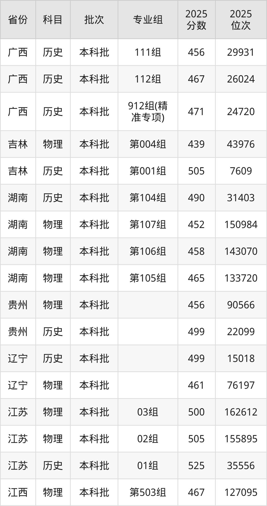 普通类本科物理类最低484分,本科历史类最低503分