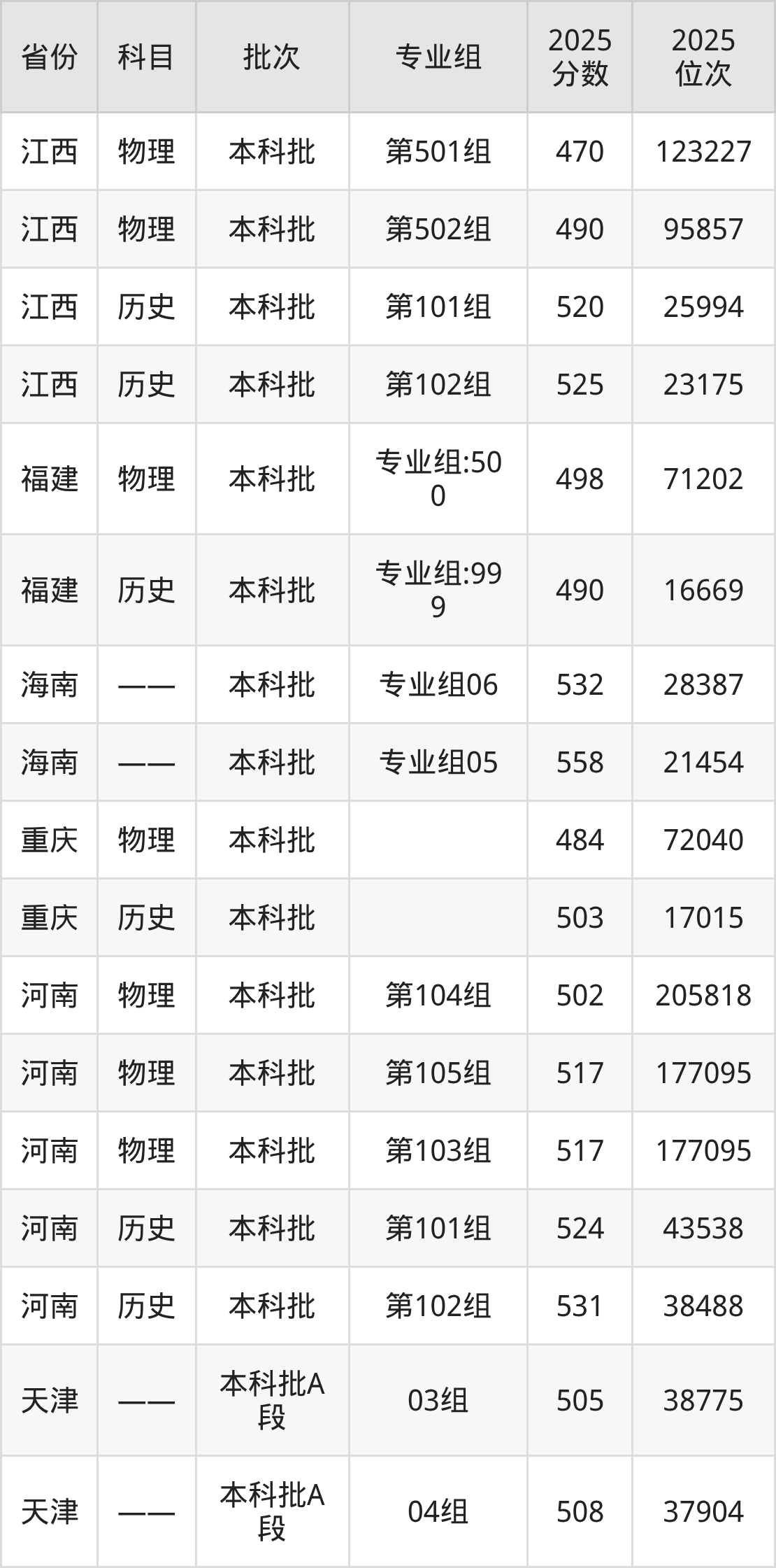 2025年投档录取最低分为503分,录取最低位次为17015名。
