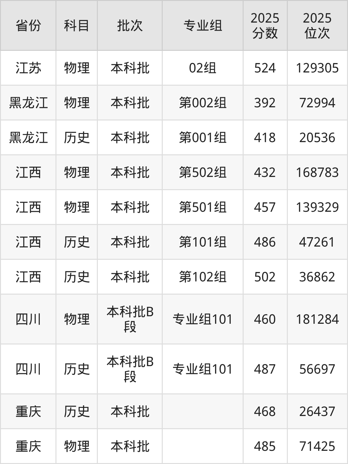 2025年投档录取最低分为460分,录取最低位次为22299名。