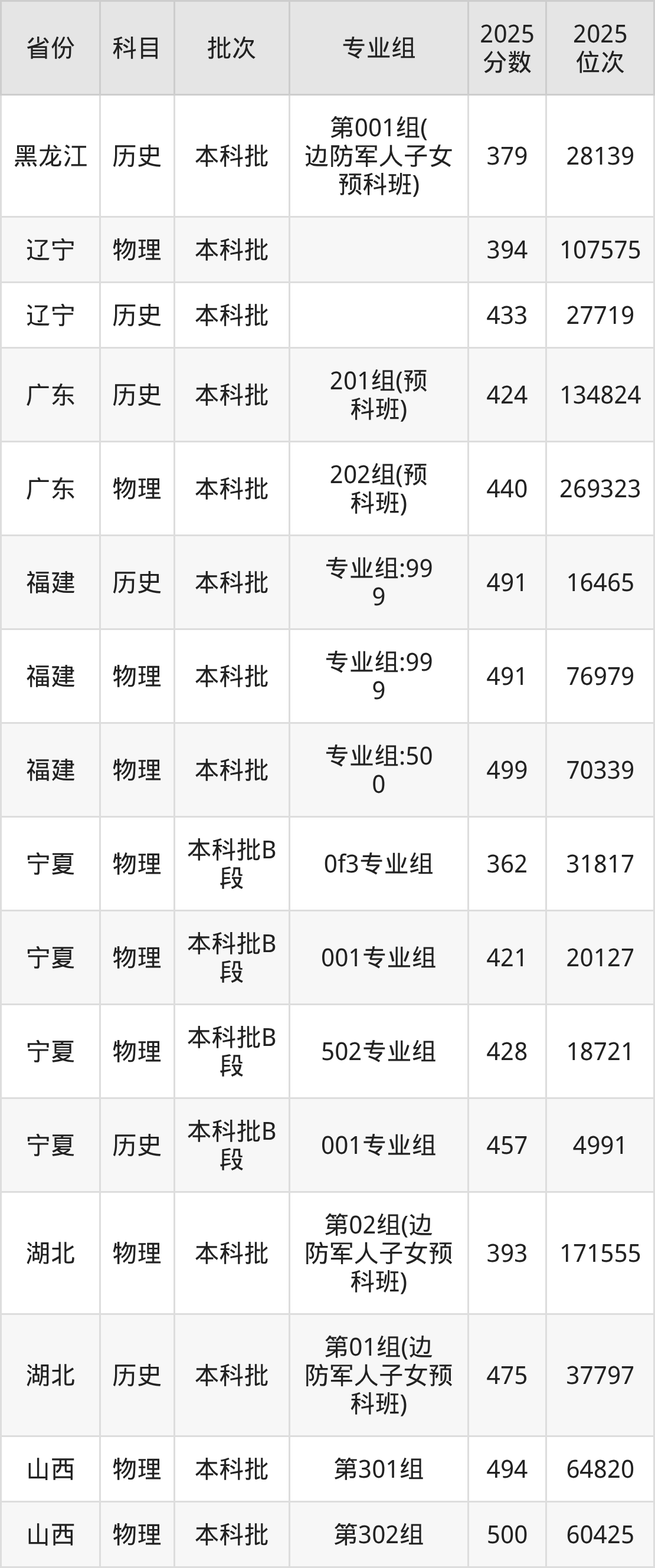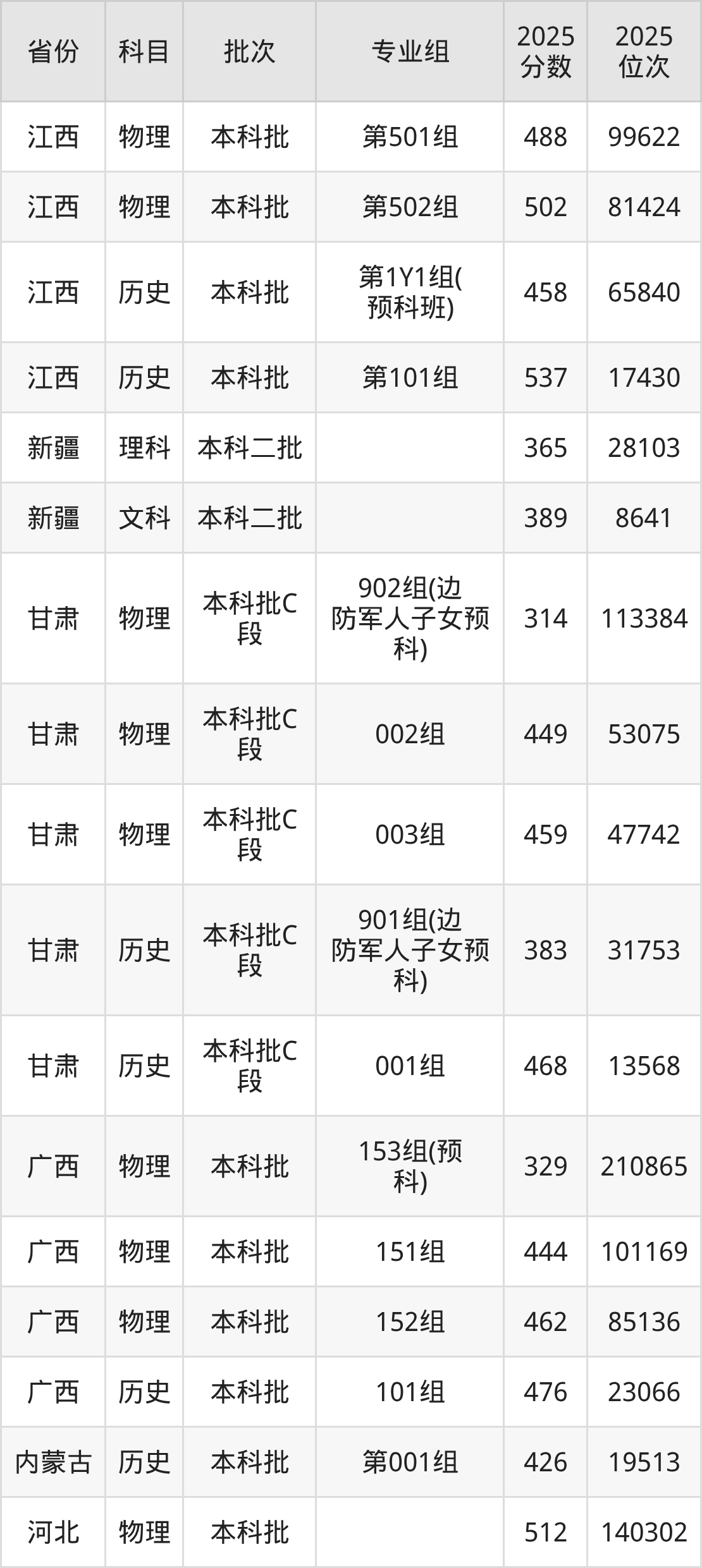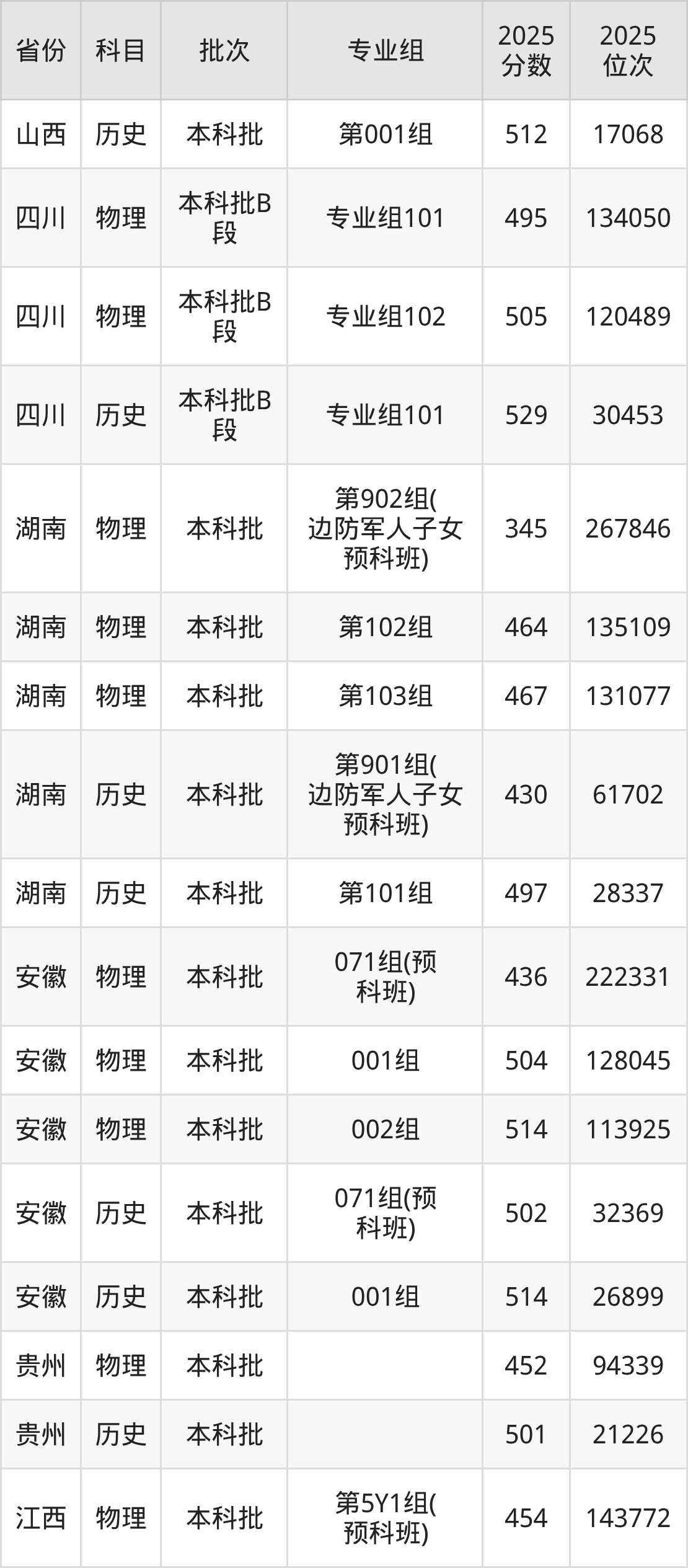 2025年在本科物理类进行招生,各专业组分数线详情如下: