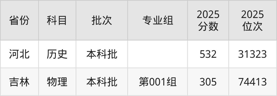 2025年在本科历史类进行招生,各专业组分数线详情如下: