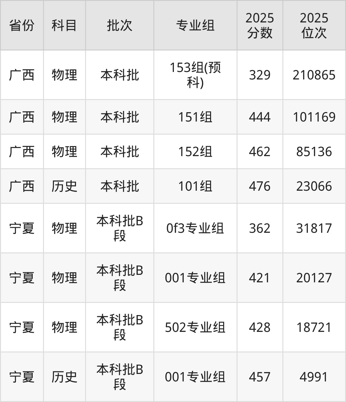 普通类本科物理类最低329分,本科历史类最低476分