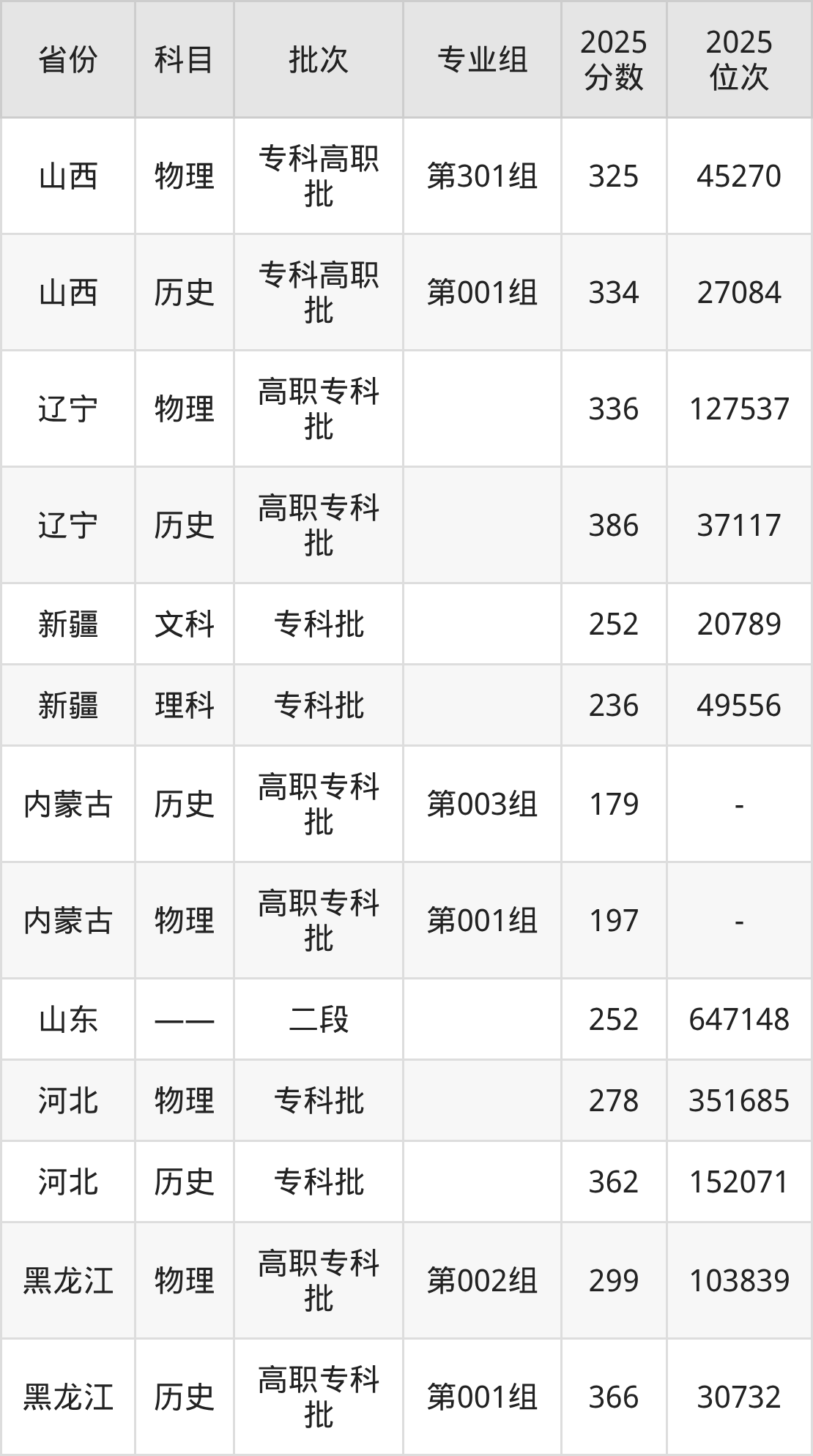 呼伦贝尔职业技术学院第003组:2025年投档录取最低分为179分,录取最低位次为0名。