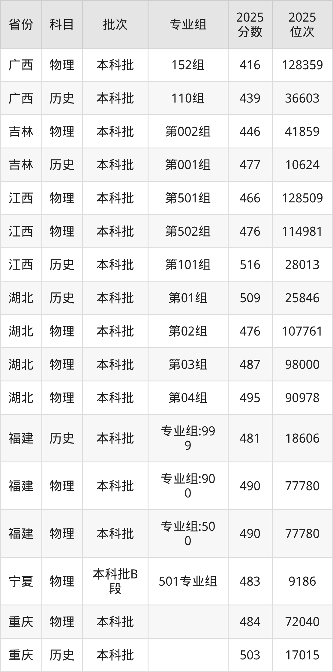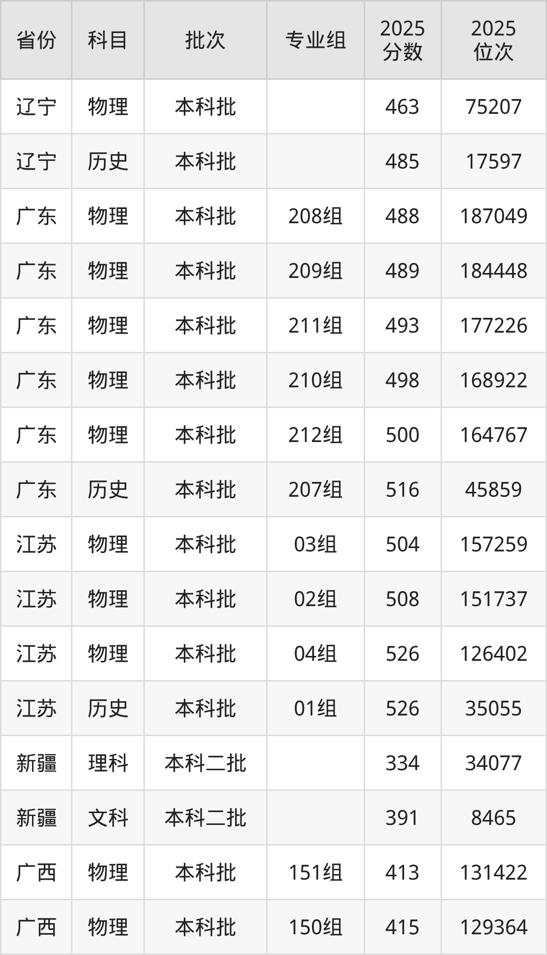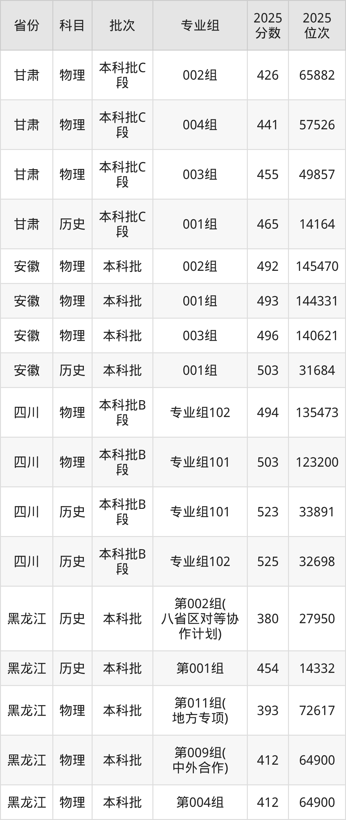 2025年投档录取最低分为463分,录取最低位次为75207名。