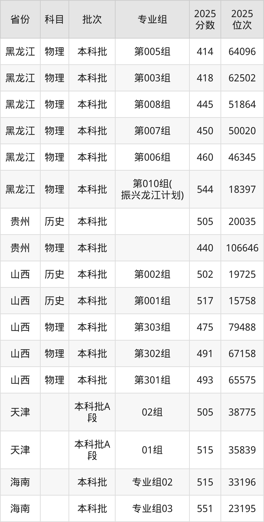 黑龙江工程学院03组:2025年投档录取最低分为504分,录取最低位次为157259名。