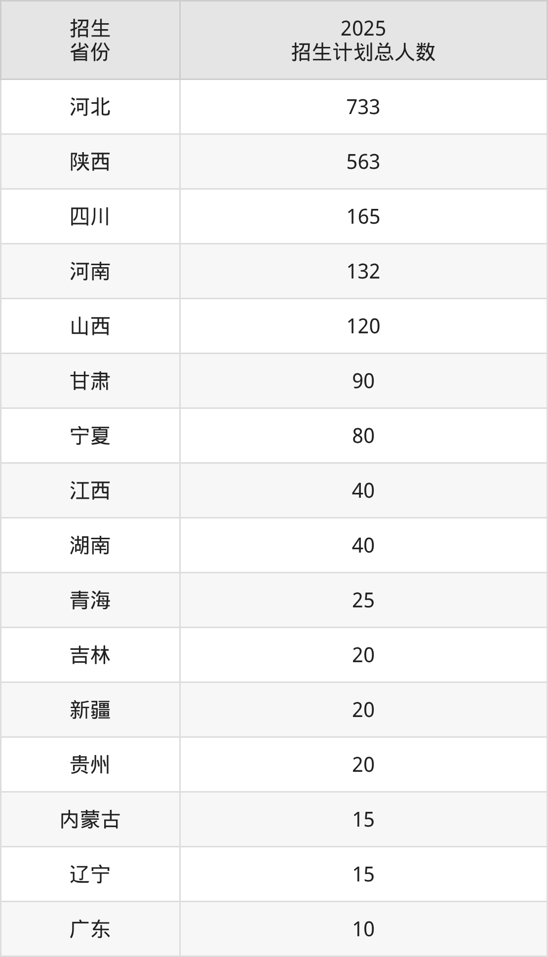 2025年陕西工商职业学院面向全国21个省市开展专科招生;招生专业共37个,招生人数共2123人。2025年在陕西省招生计划总人数是563人,其中,陕西工商职业学院在陕西省招生人数最多的是建筑设备工程技术。陕西工商职业学院在各省具体招生人数情况如下表。