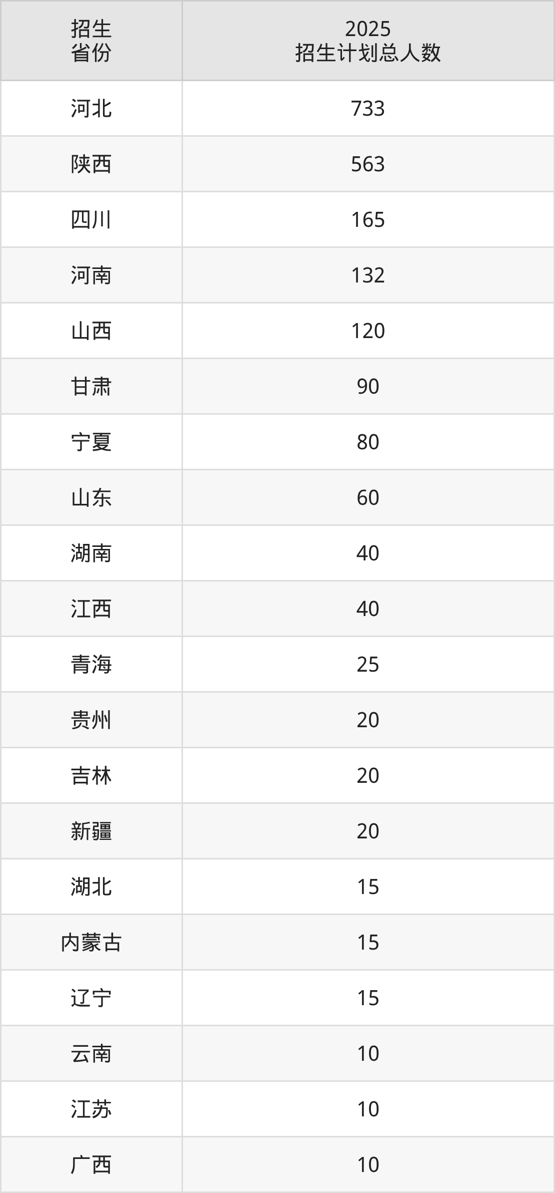 2025年陕西工商职业学院面向全国24个省市开展专科招生;招生专业共37个,招生人数共2208人。2025年在陕西省招生计划总人数是563人,其中,陕西工商职业学院在陕西省招生人数最多的是建筑设备工程技术。陕西工商职业学院在各省具体招生人数情况如下表。