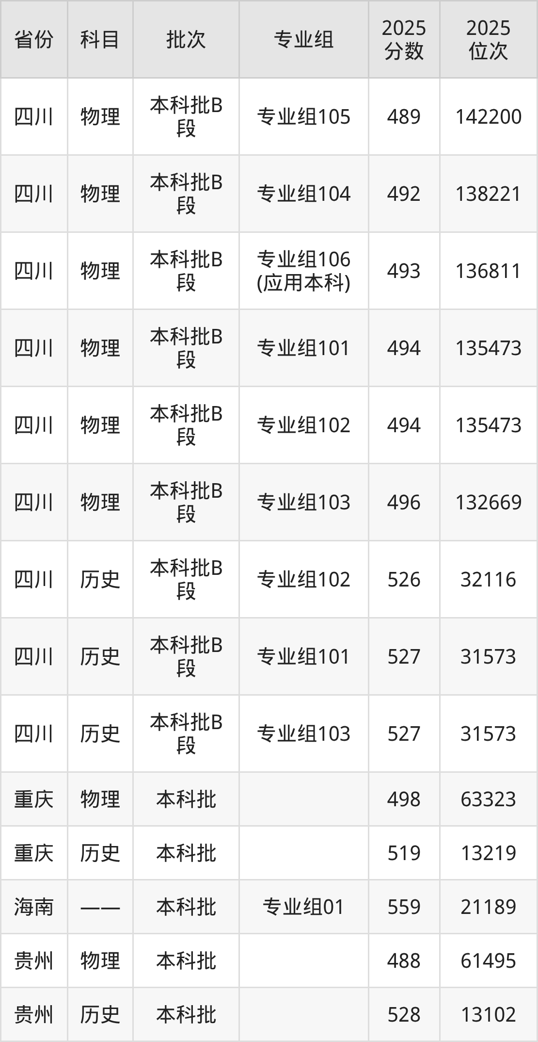 四川民族学院专业组102:2025年投档录取最低分为494分,录取最低位次为135473名。