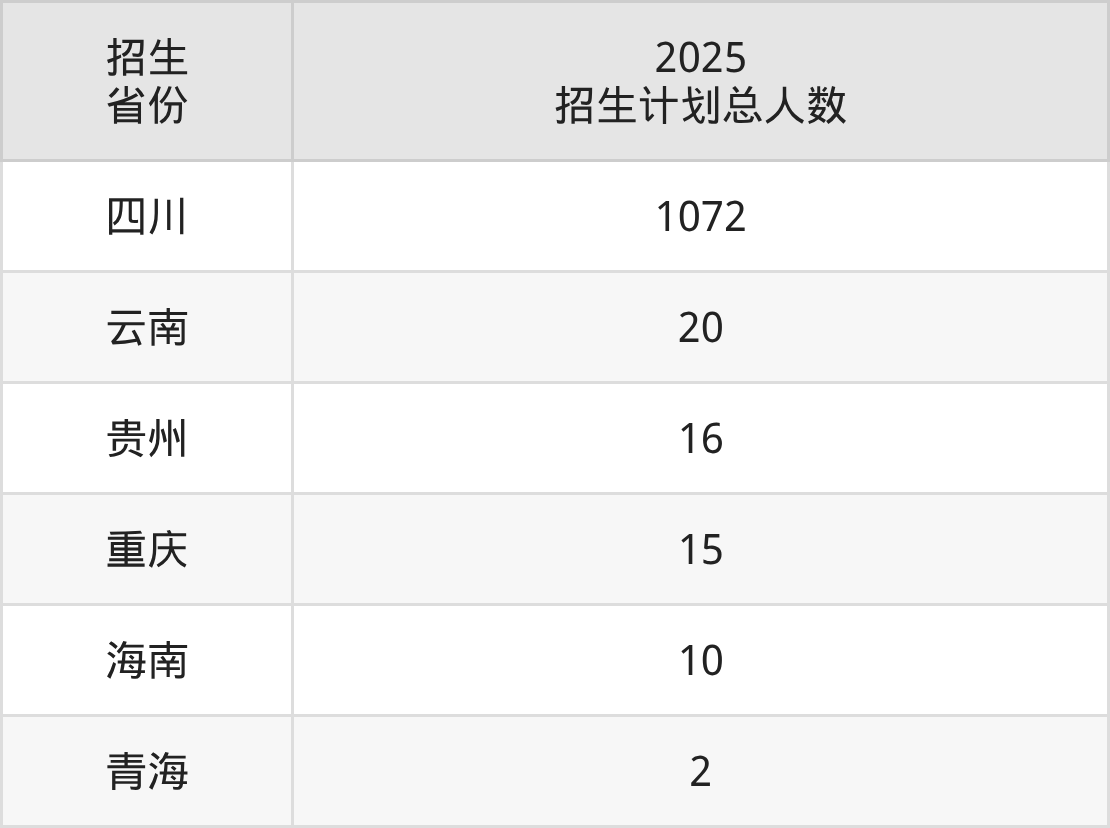 2025年四川民族学院面向全国6个省市开展本科招生;招生专业共22个,招生人数共1135人。2025年在四川省招生计划总人数是1072人,其中,四川民族学院在四川省招生人数最多的是动物医学。四川民族学院在各省具体招生人数情况如下表。